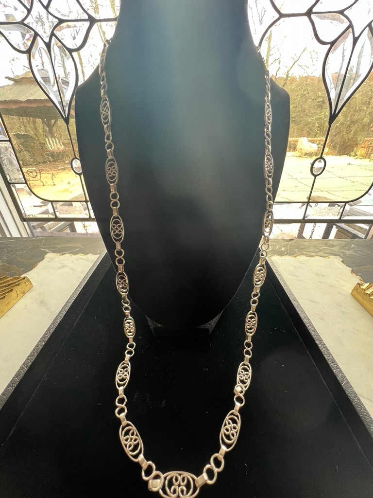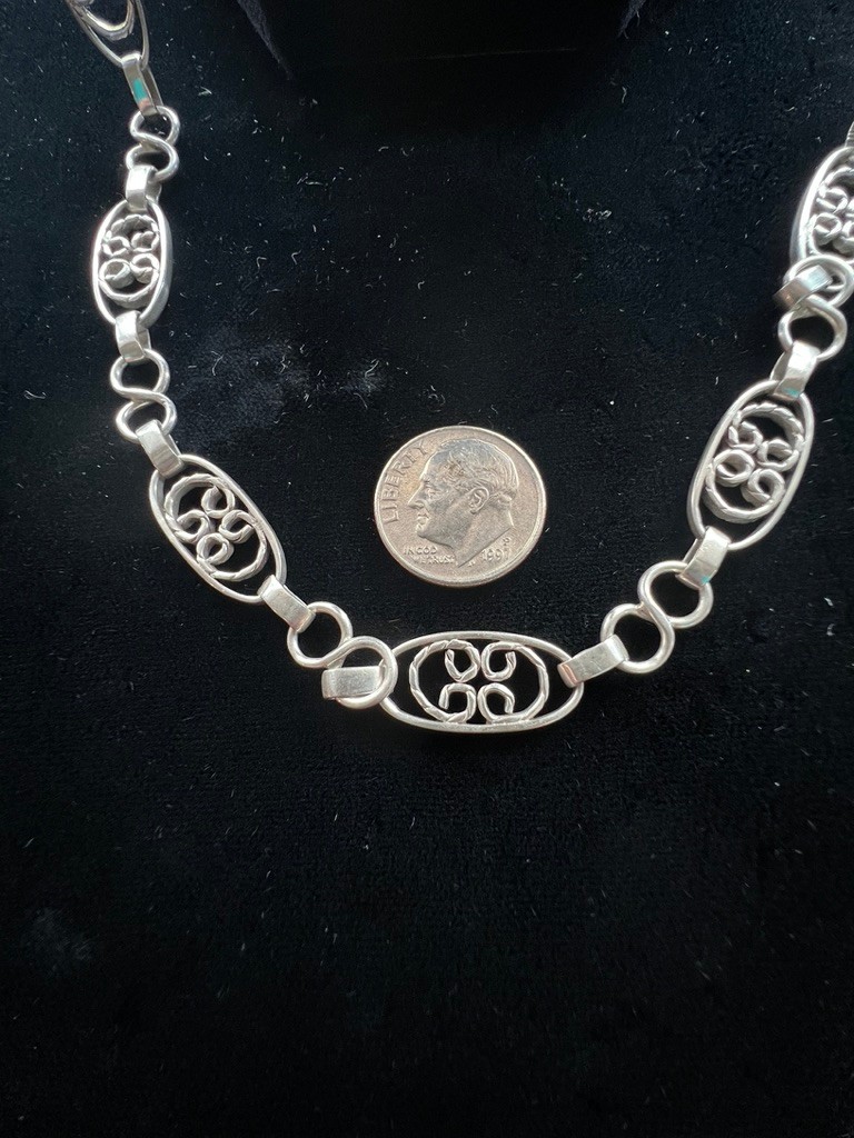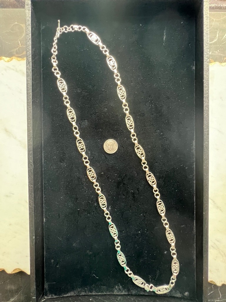 Taxco Filigree Sterling Silver chain, 24" long, in super condition, lovely flow, moves with you, good weight, and style