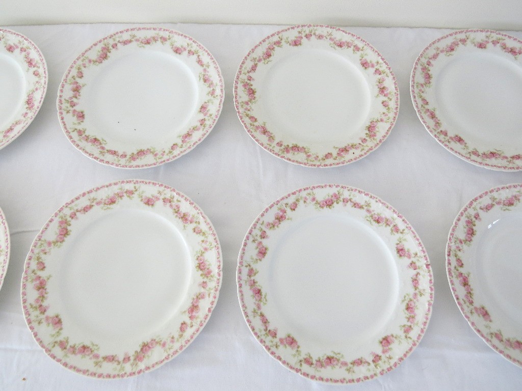 A group of ten GDA Limoges France porcelain serving plates, all appear to be in good shape.