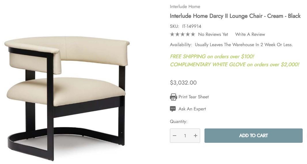 Another amazing piece from Interlude Home - Interlude Home Darcy II Lounge Chair (retail $3k!!) Some light dirt seen in photos - **Please View the Pictures for Item Condition** and Thank You for your Support. Every Dollar helps individuals and families through our Foundation & Mission.