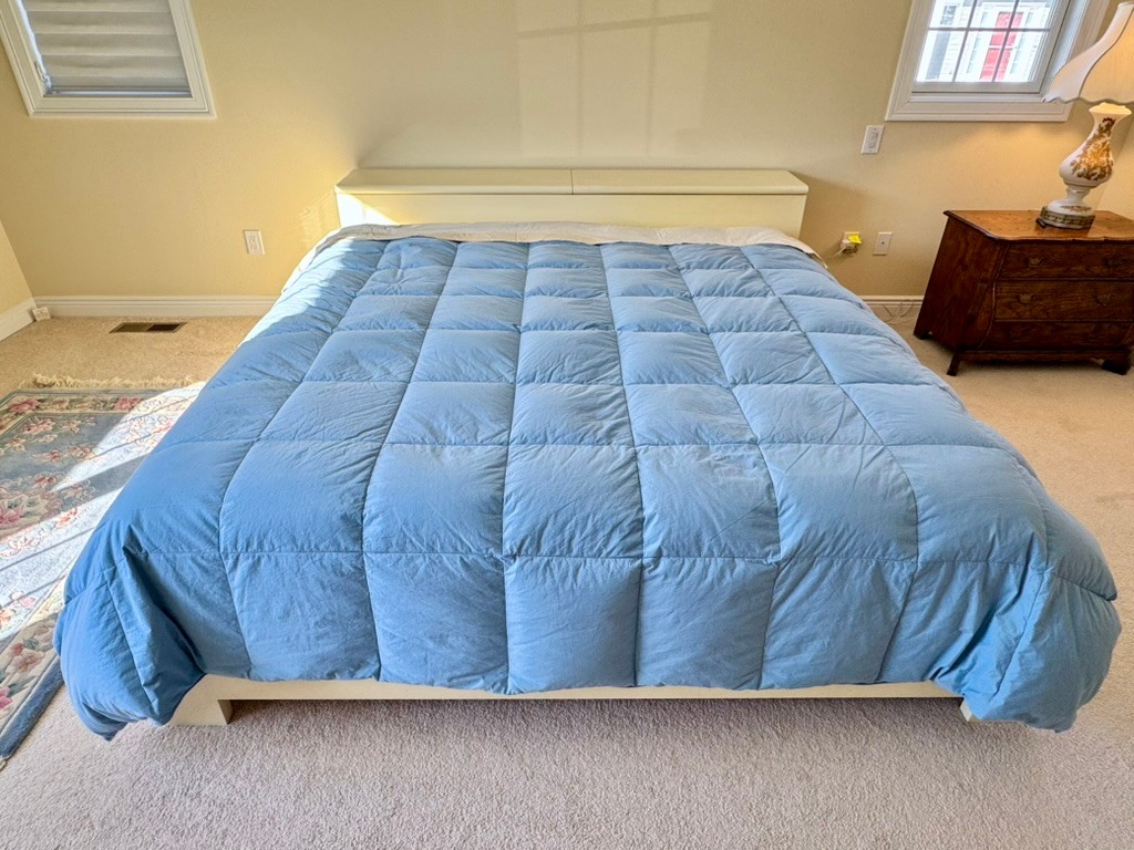 This high quality comforter measures 100 x 90 and is in very good, clean condition. The Company Store tag is in place, but not the fill / weight label so we are unable to confirm the exact fill, but it feels like down or a down blend. Note: this listing is for the comforter only. Other items may be available elsewhere in the auction.