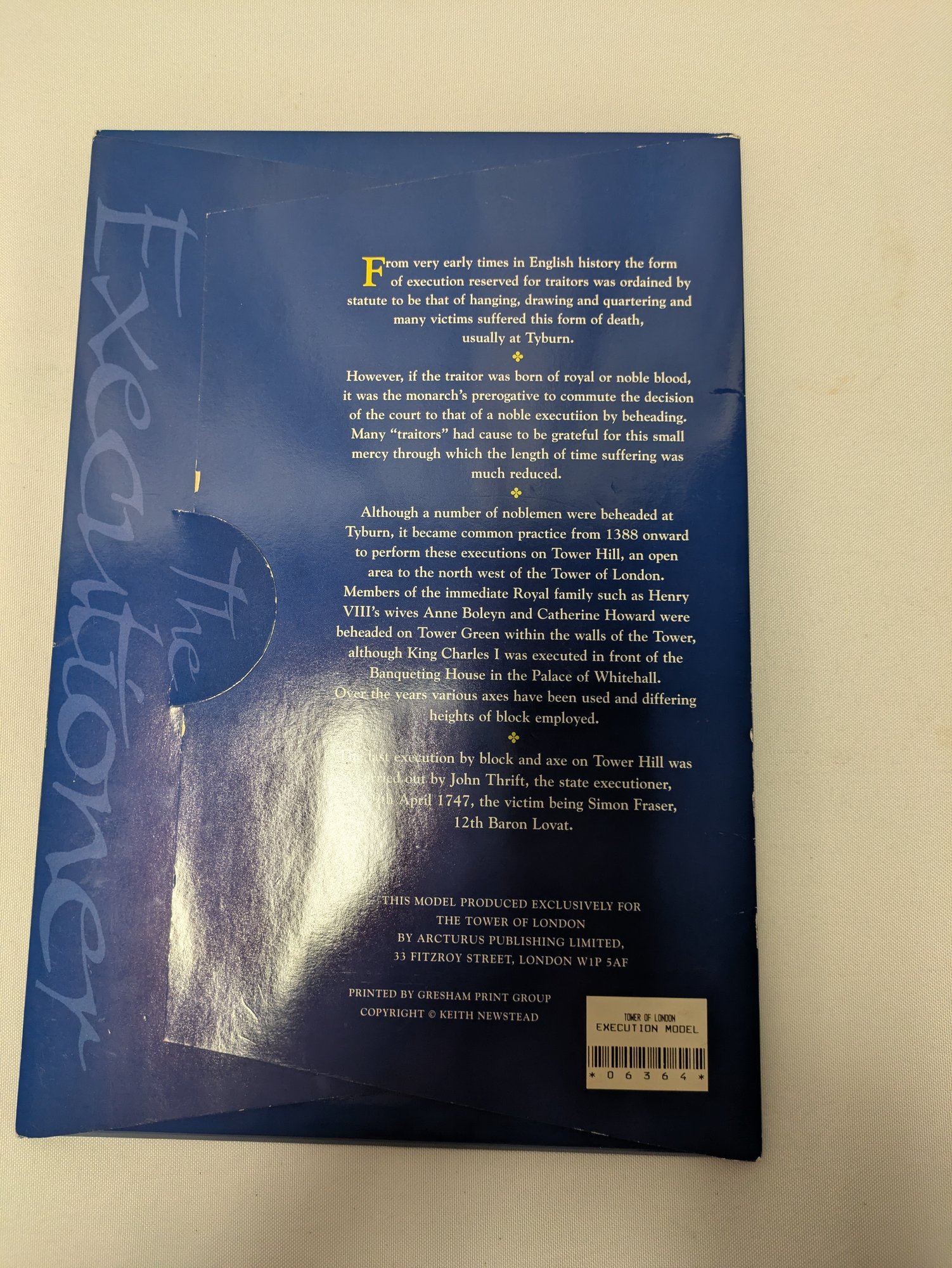 "The Executioner," an easy-to-assemble moving paper model kit from the Tower of London gift shop. It is a paper automata kit that, once assembled, creates a moving model of an execution scene. Excellent Condition. New in the Package. Please see all photos as part of the description and condition.