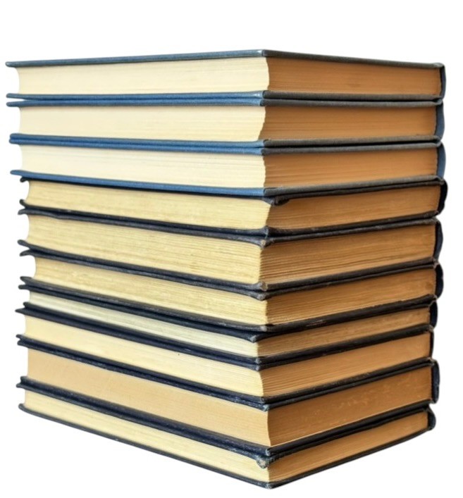Note: Vintage academic set with visible wear to cloth covers and spine labels. Several volumes show scuffing, edge wear, and fading consistent with age and handling. Most are heavily annotated.