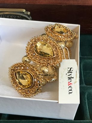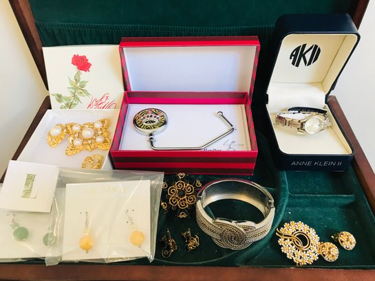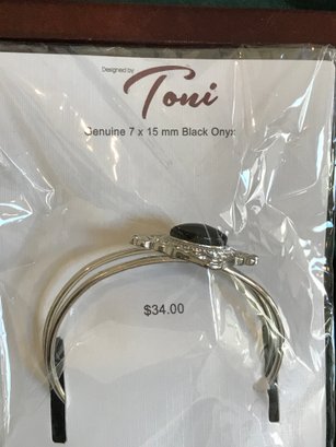 Designer Pieces: Includes an Anne Klein II watch in its original case and jewelry by Toni (featuring a "Genuine Black Onyx" cuff bracelet).