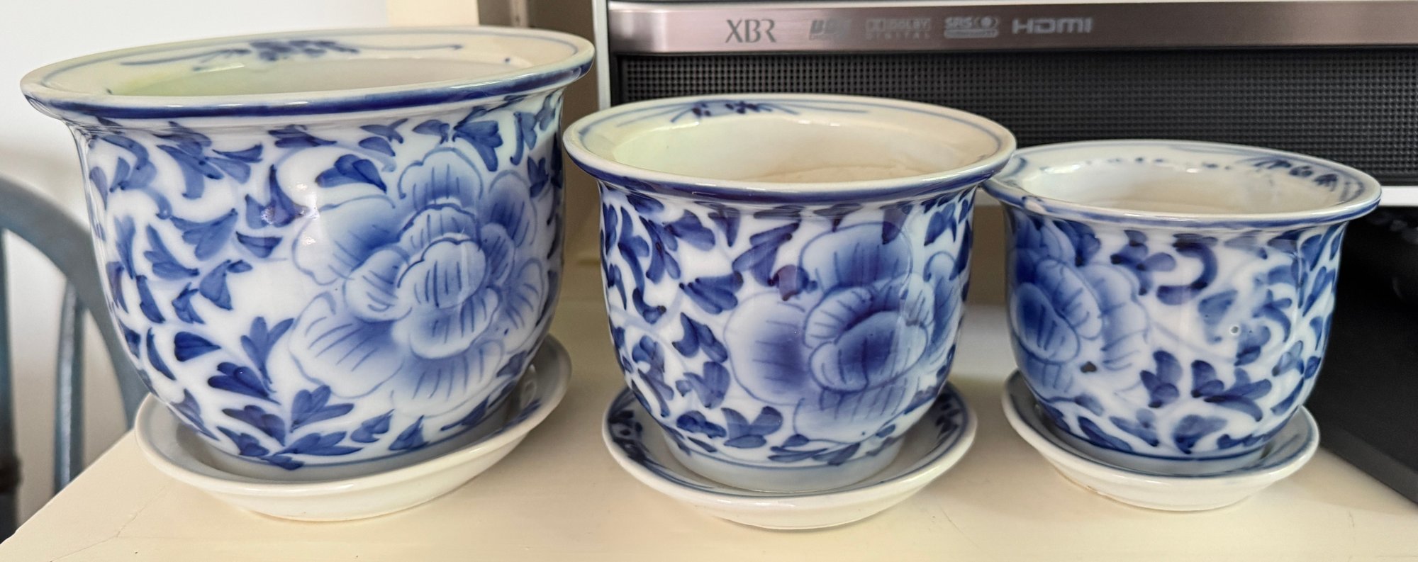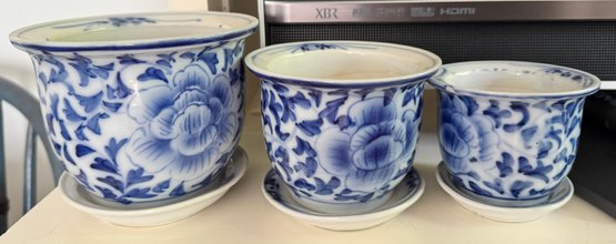 Three Blue And White Planters