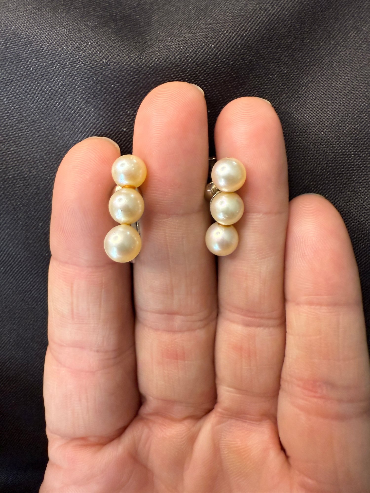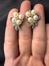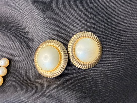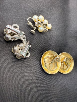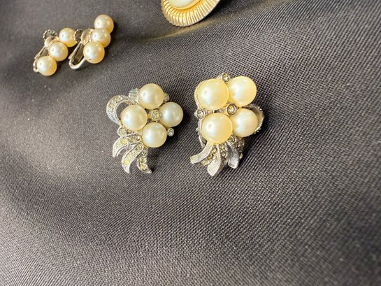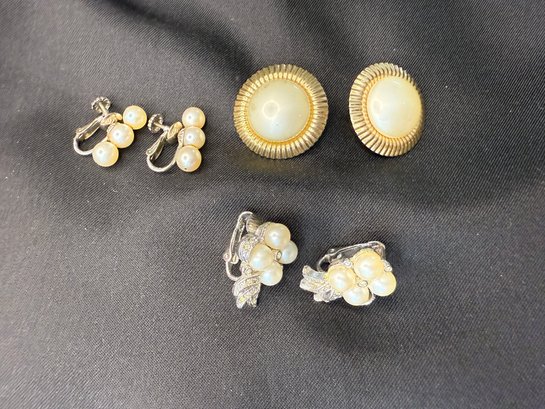 Three pairs of vintage earrings - all featuring some form of faux pearl in the design - two being clip-on and one screw-back.