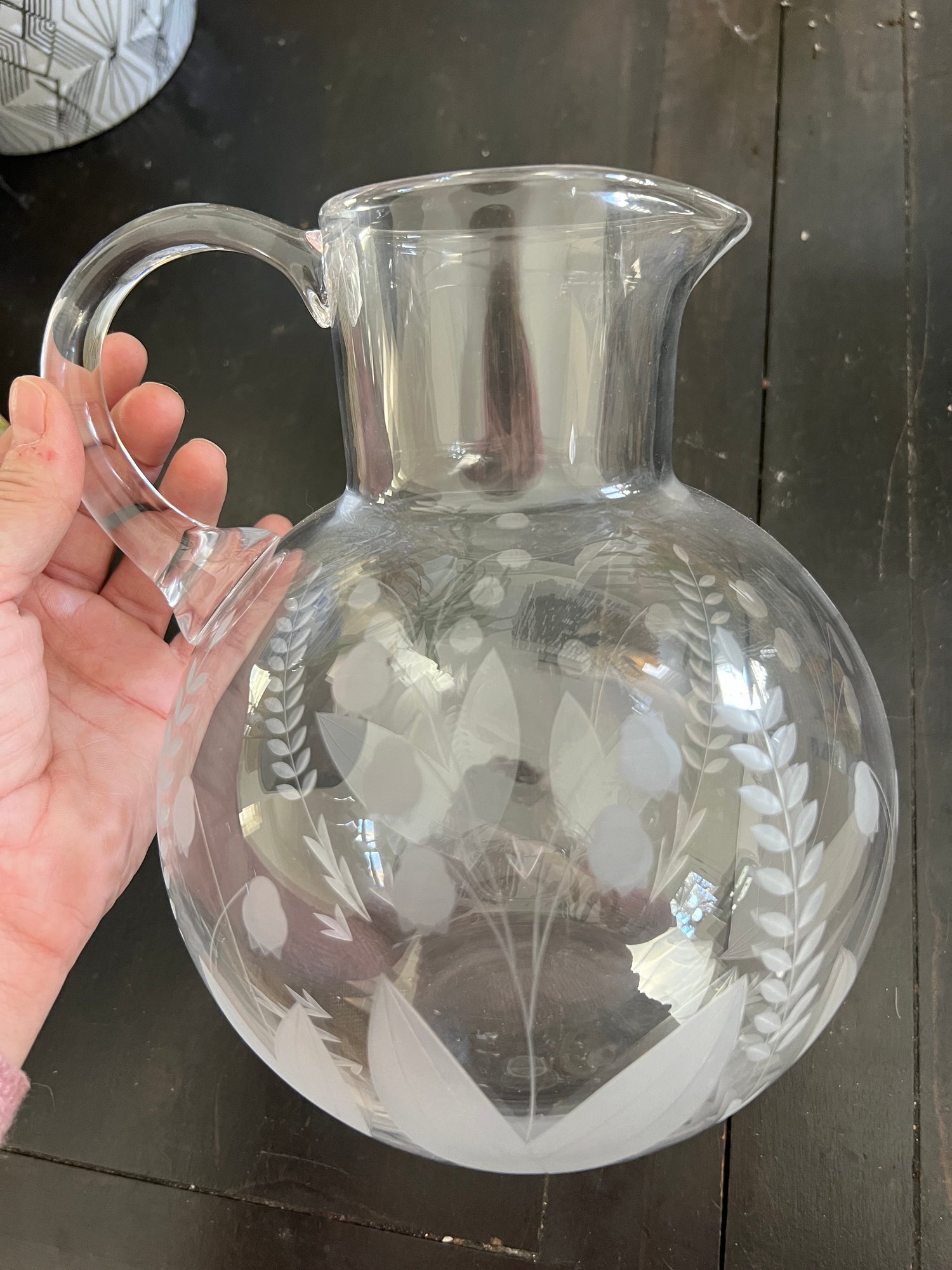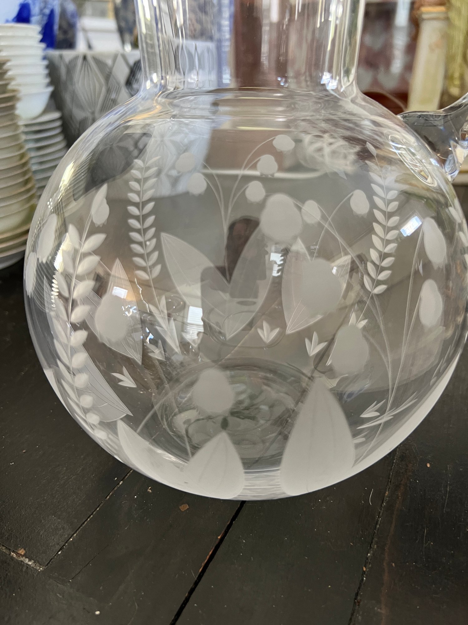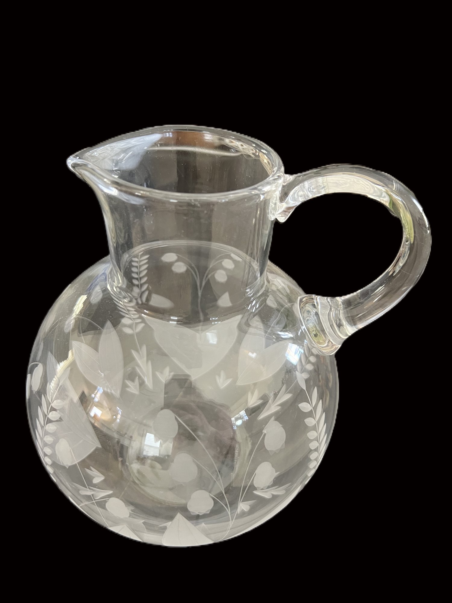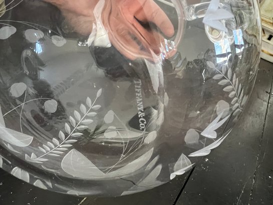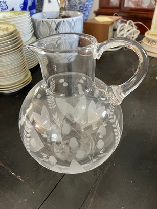 Simply elegant Tiffany & Co. Lily of the Valley pattern etched crystal pitcher.