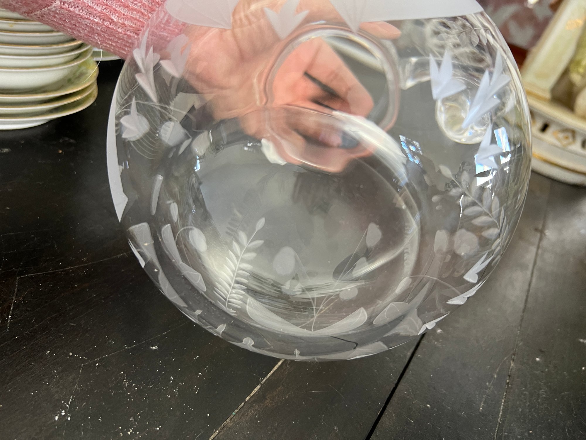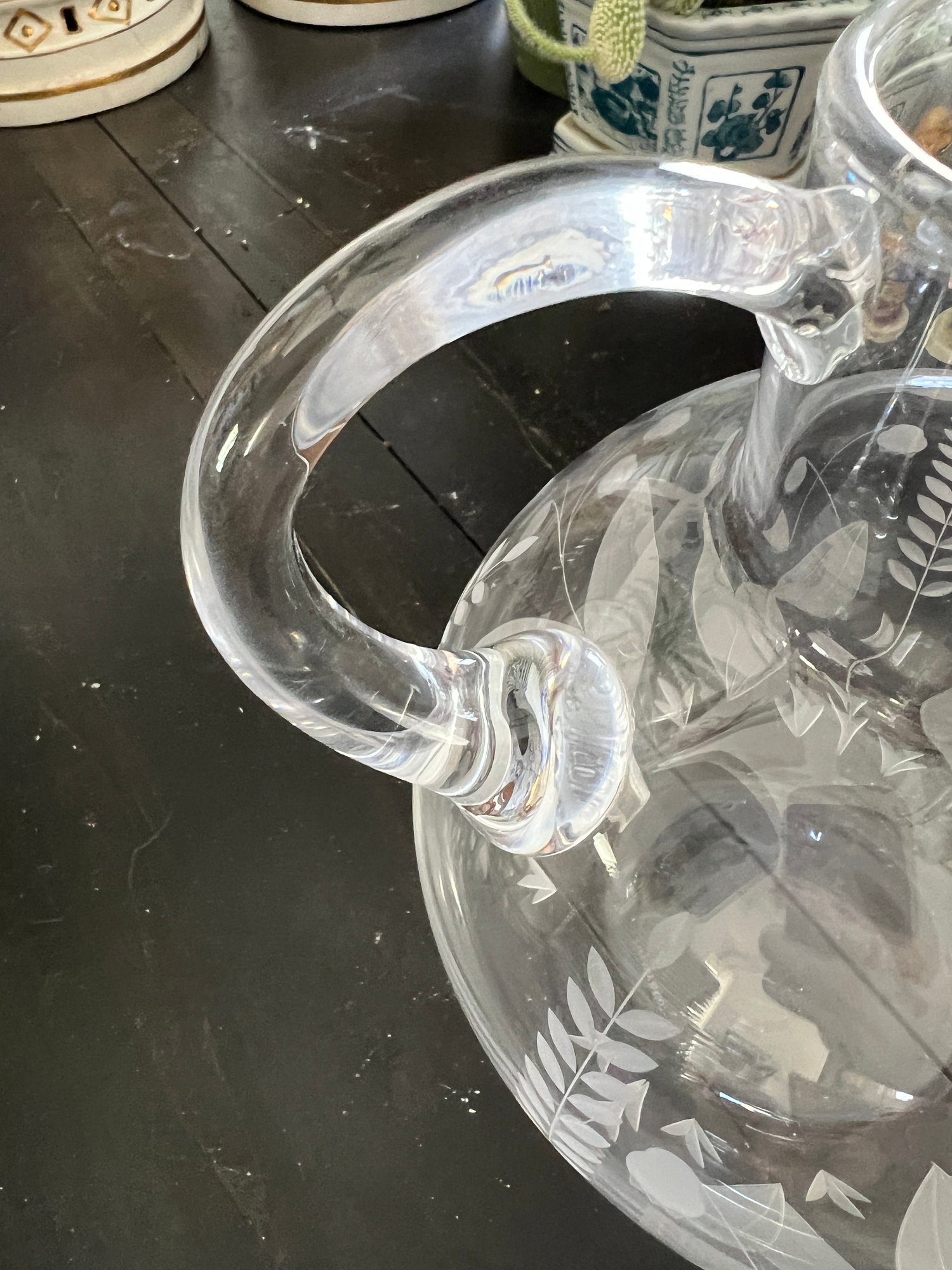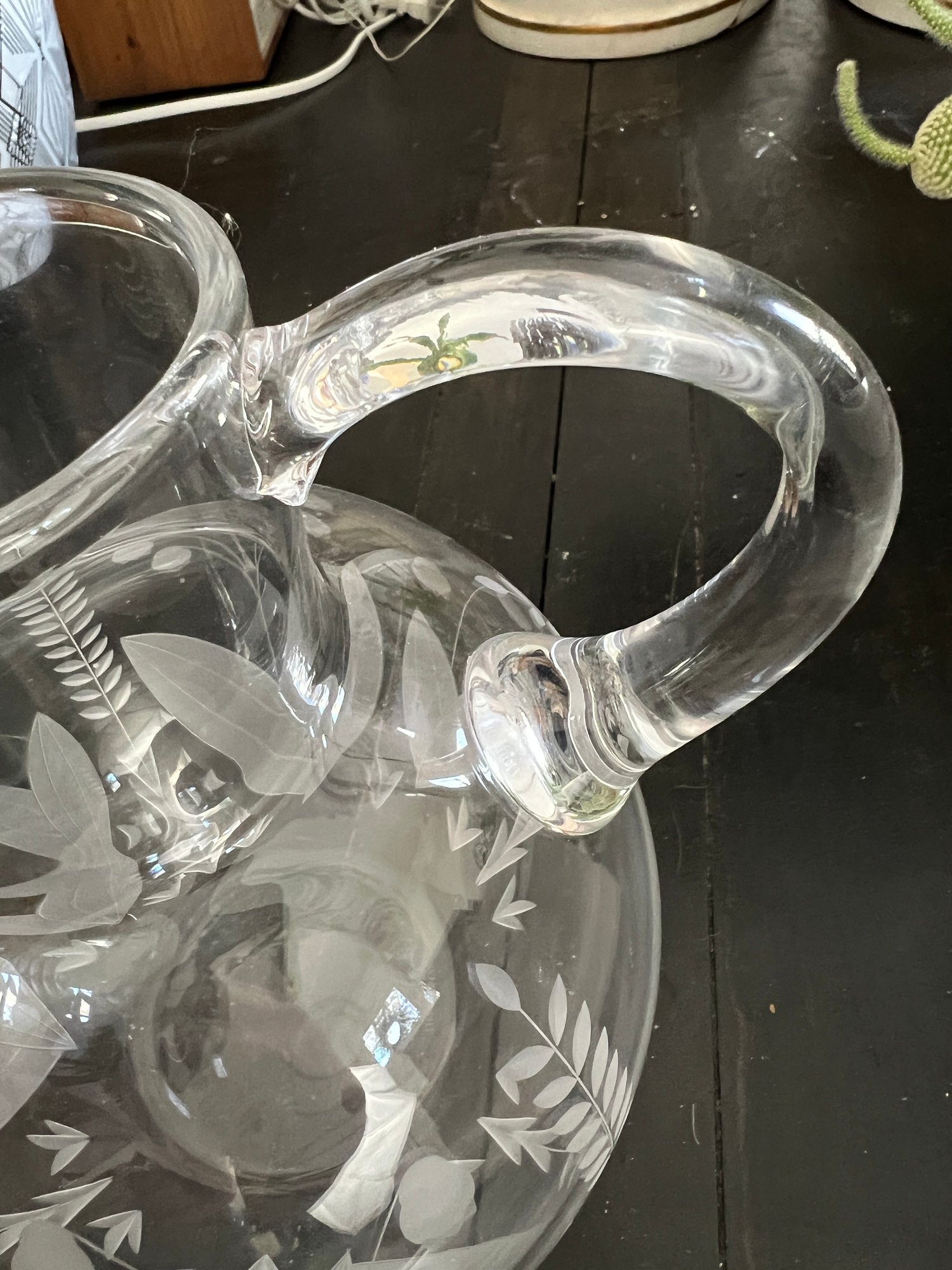 Simply elegant Tiffany & Co. Lily of the Valley pattern etched crystal pitcher.