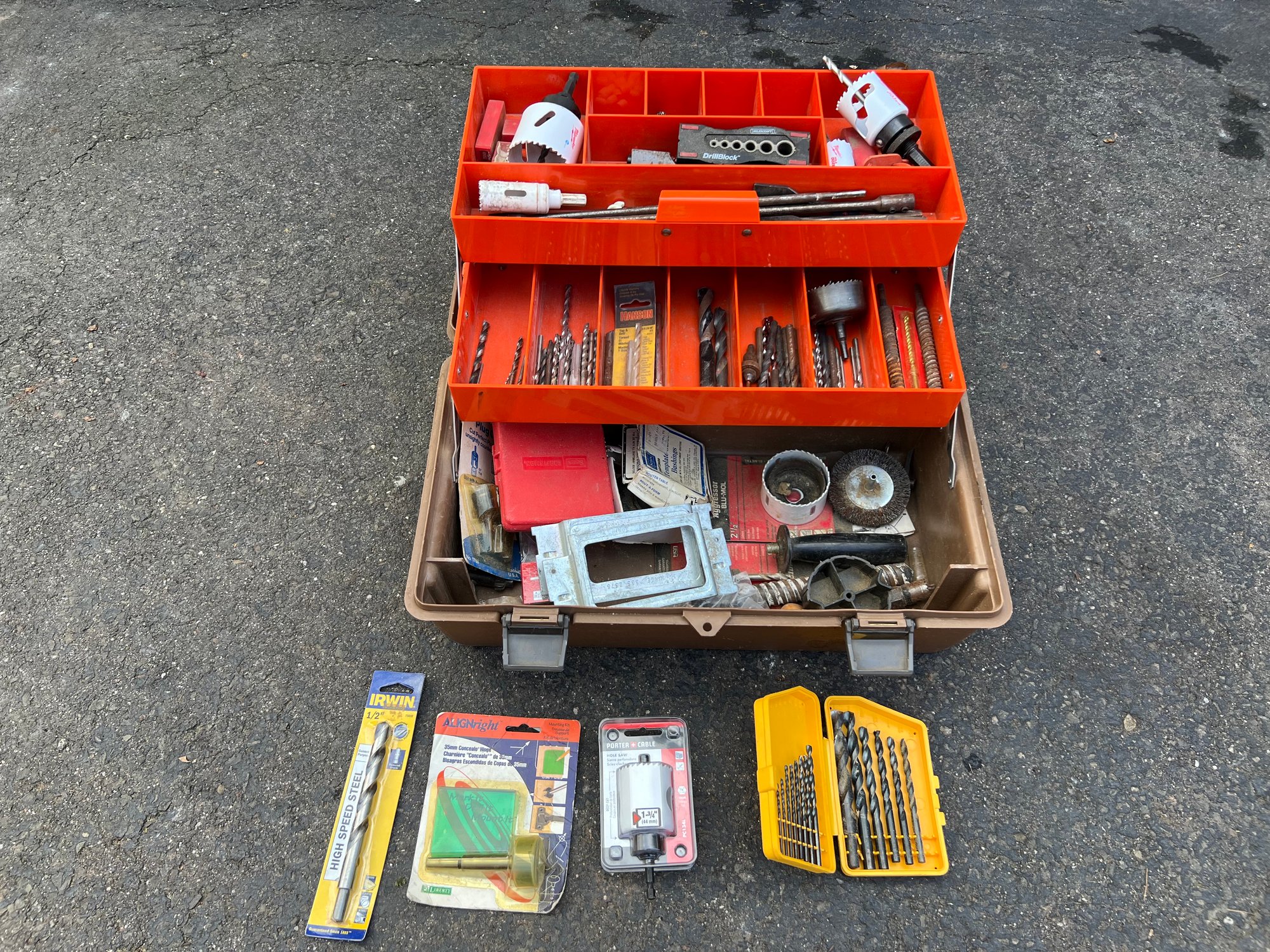 Tool Box Full Of Drill Bits, Hole Saws, And More