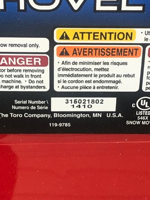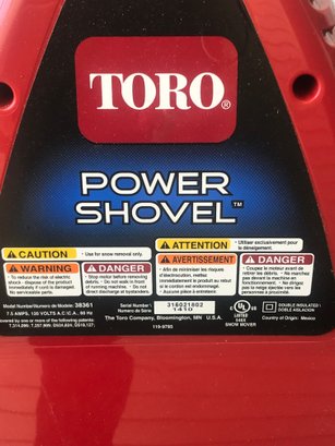Up for auction is a Toro Power Shovel, an efficient and lightweight electric snow thrower designed for clearing decks, patios, and walkways. This corded electric model (7.5 AMP) is easy to maneuver and eliminates the need for gas or oil maintenance.