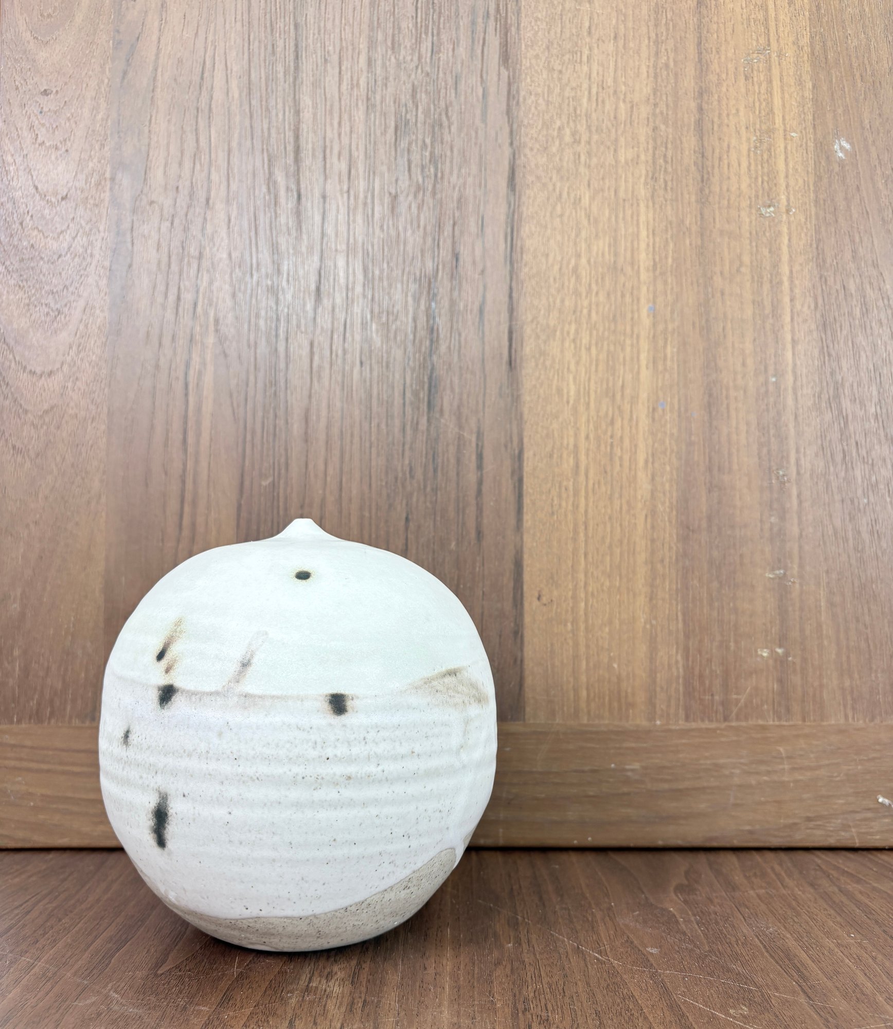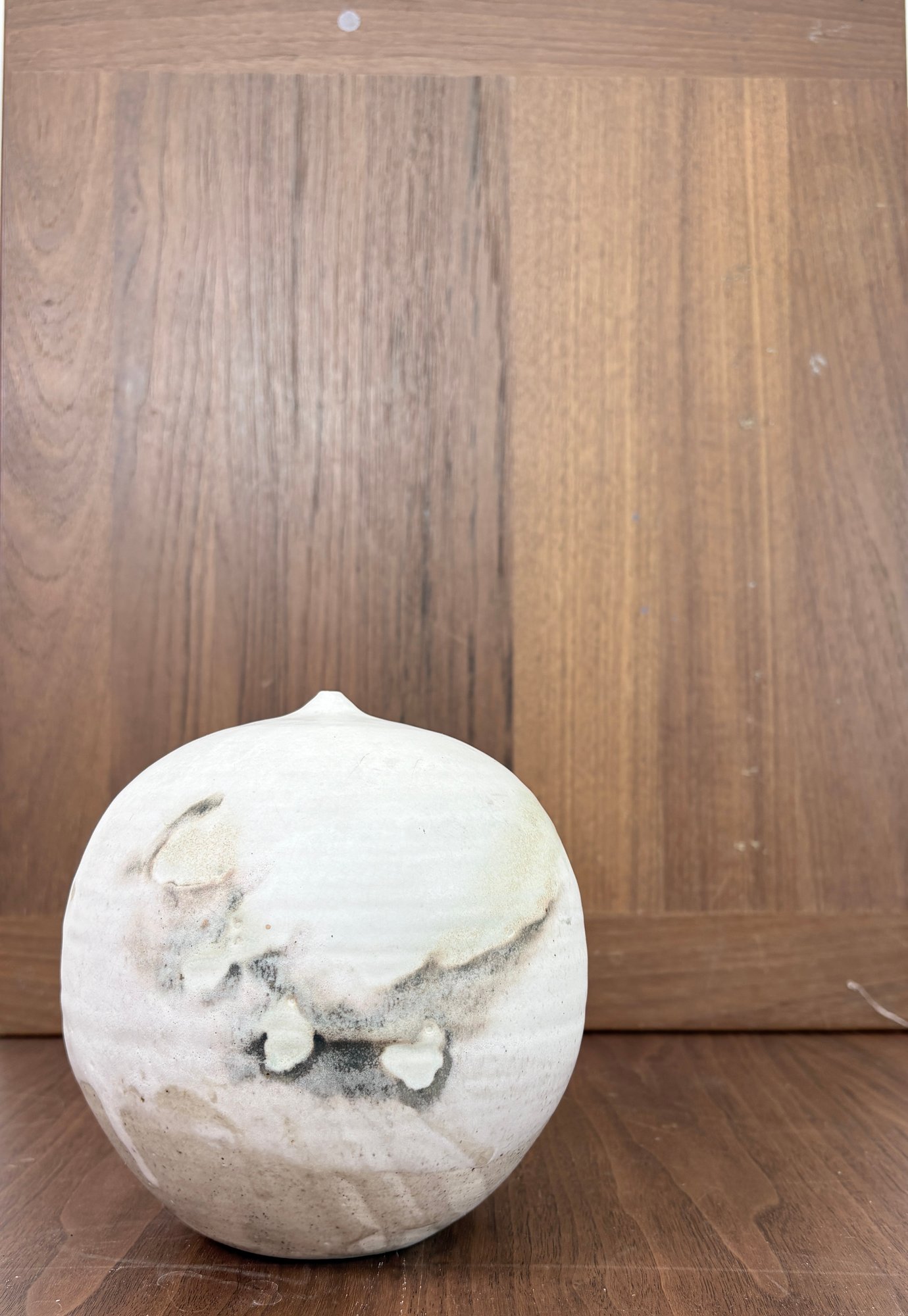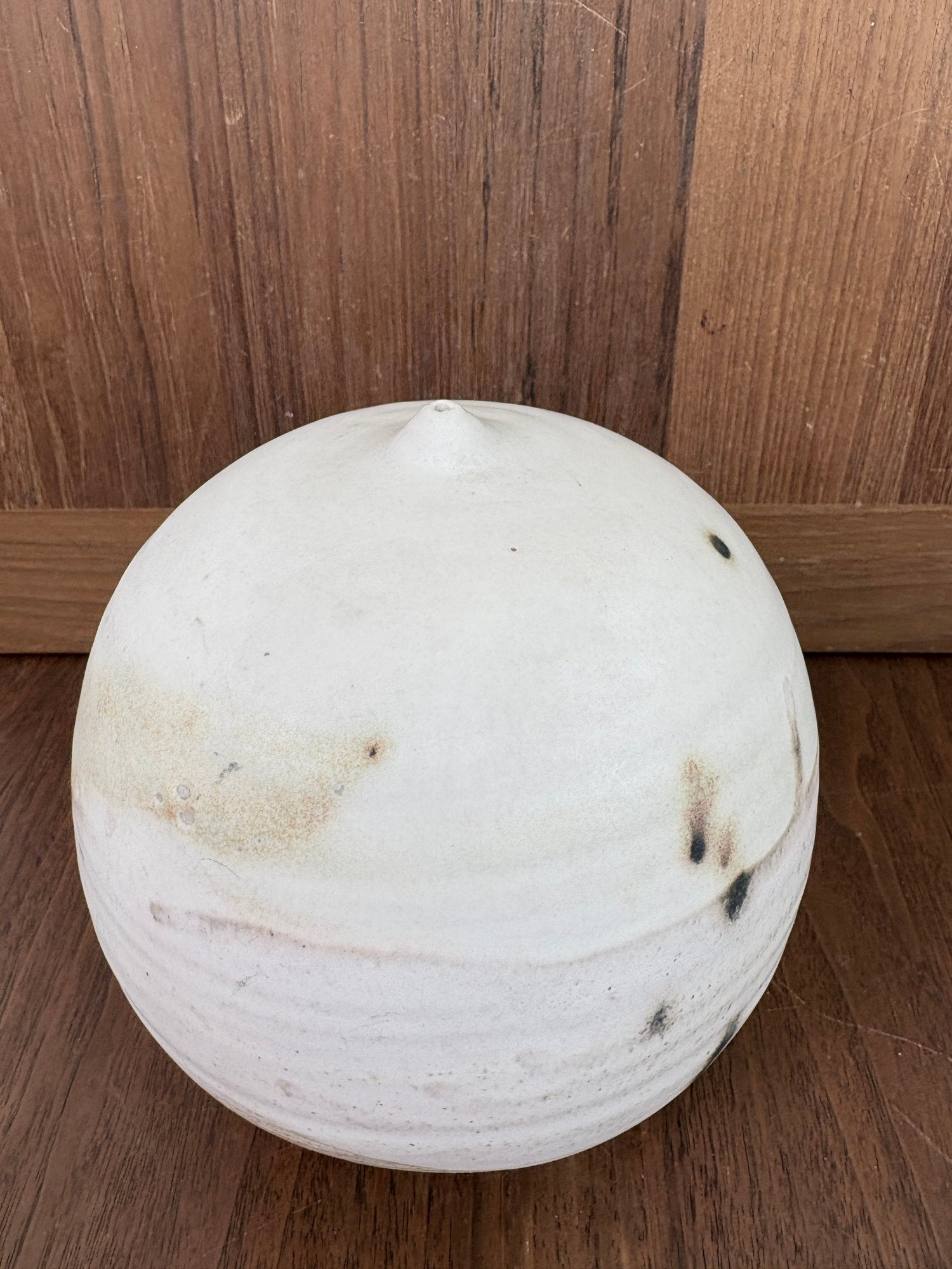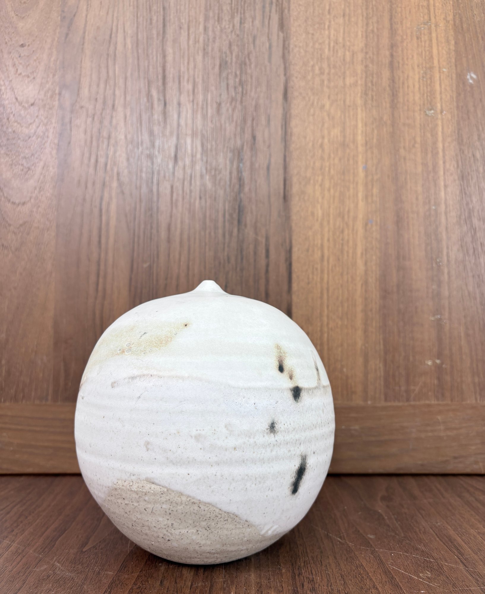 In 1951, Takaezu was accepted to the prestigious Cranbrook Academy of the Arts in Bloomfield Hills, MI. In her third year, she accepted the position of teaching assistant to Finnish ceramic artist Maija Grotell. An excellent teacher with a knack for experimenting with glazes, Grotell had a profound influence on Takaezu’s work and encouraged her to find her own voice as an artist. After graduating, she went abroad in 1955 to explore her Japanese heritage, including the study of the tea ceremony and Zen Buddhism. While there, she studied the techniques and aesthetics of renowned artists Toyo Kaneshige and Yagi Kazuo, among others.