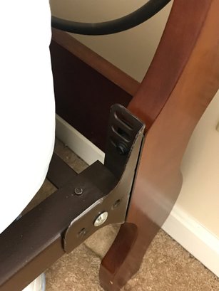 Condition: Good sturdy condition. Note some sun fading on one wood arm (see photos). Clean, non-smoking household. Lighter weight