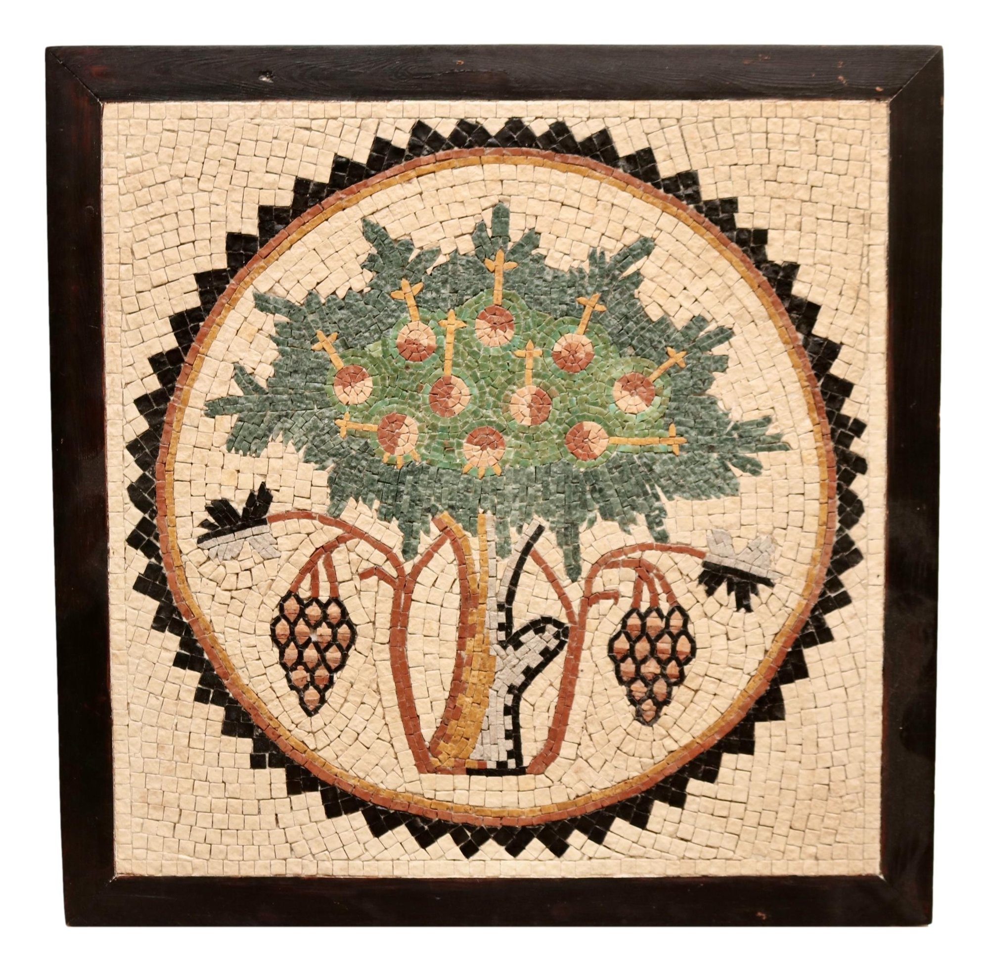 Experience the timeless beauty of the “Tree of Life” mosaic, meticulously handcrafted in Jordan. This exquisite piece features a harmonious blend of earthy browns, vibrant greens, and subtle terracotta hues, artfully arranged to depict the iconic Tree of Life motif. Each stone is hand-cut and thoughtfully placed, reflecting generations of skilled craftsmanship. Encased in a refined dark wood frame, this mosaic not only serves as a captivating focal point but also embodies the enduring connection between nature and spirituality. Ideal for adding a Symbol of Eternal Growth to any space.