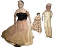Trio of very old antique porcelain dolls, ranging from small to large. One marked on the back but can't quite make it out - eyes open and close on that one and it has a leather body.