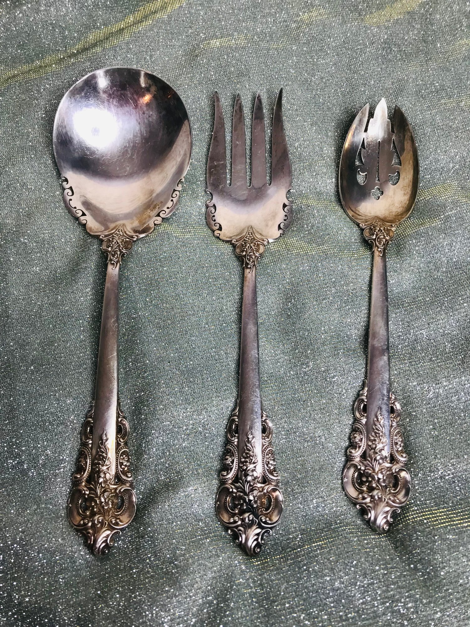 Trio of STERLING SILVER Wallace Grand Baroque Serving Pieces Lot #2