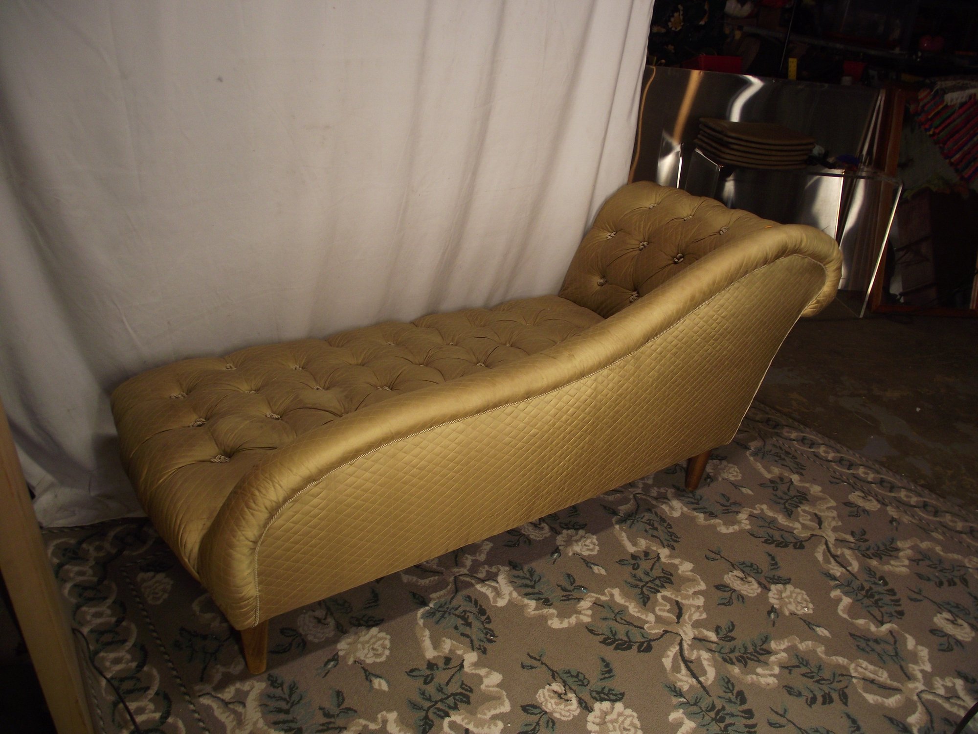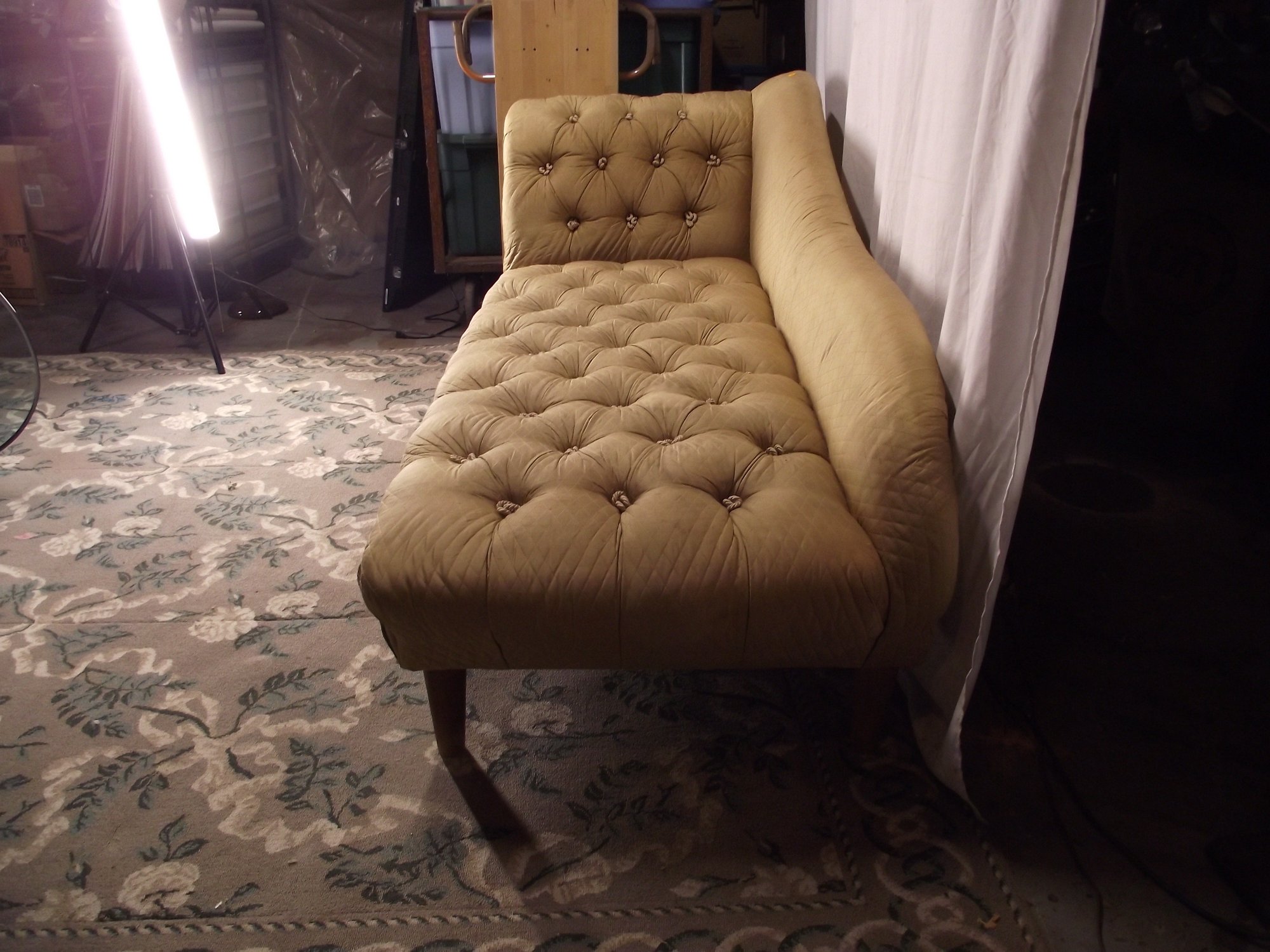 TUFTED CHASE LOUNGE COUCH. SEE PHOTOS FOR CONDITION.