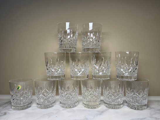 Twelve Waterford Crystal Lismore Pattern Rocks Glasses