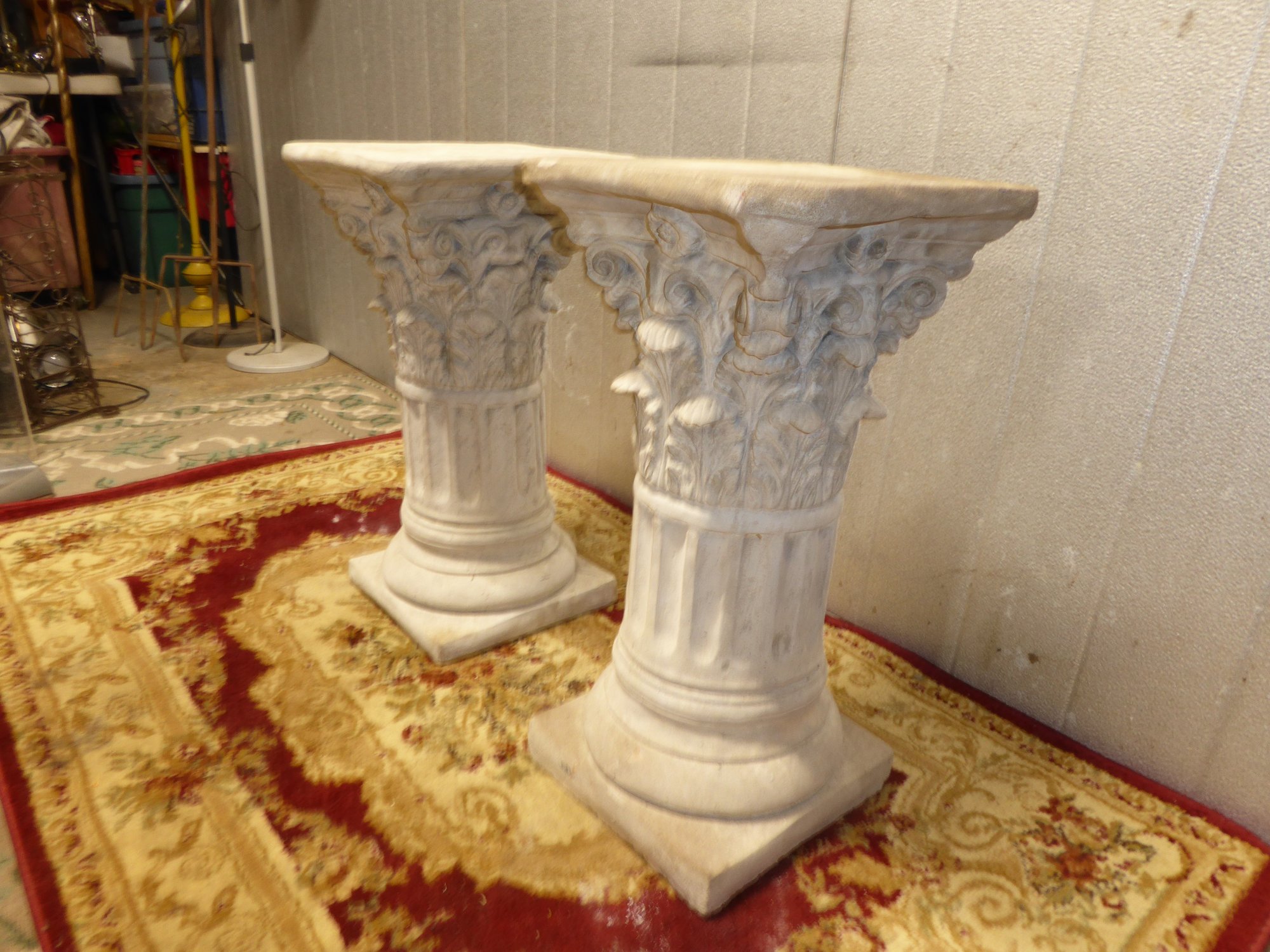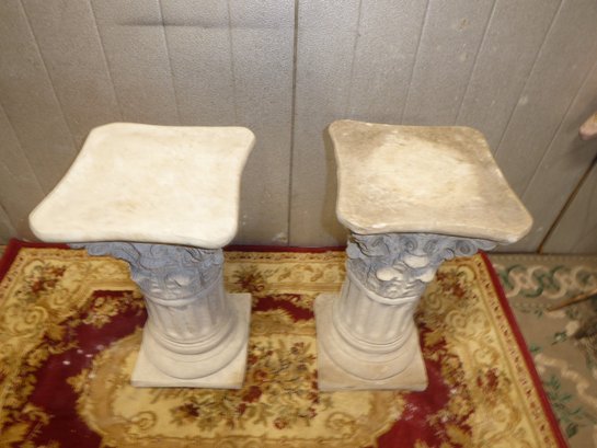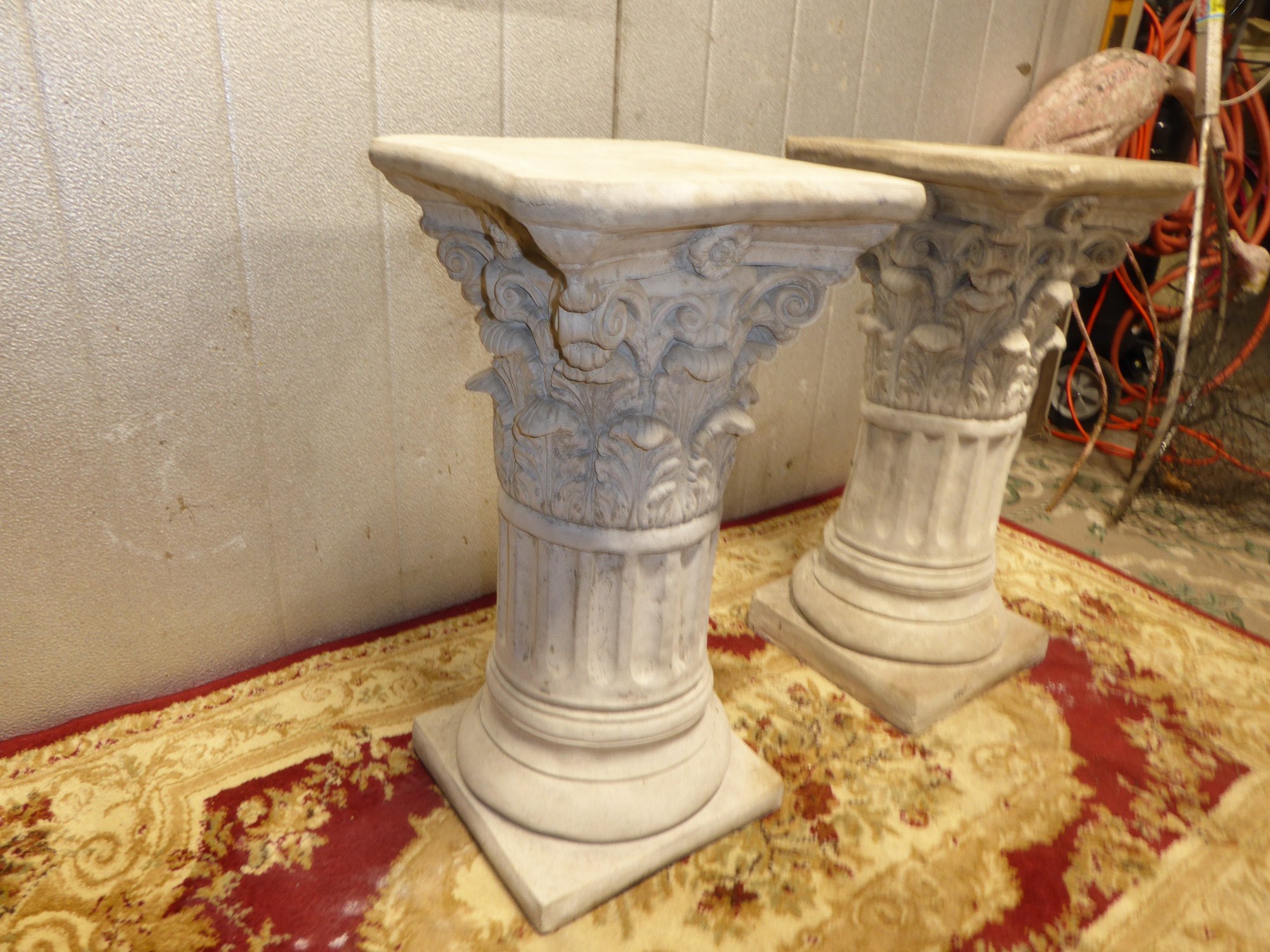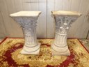 Two 24-Inch Tall Corinthian Style White Cement Stone Pedestals