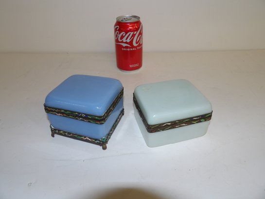 Two Chinese Boxes With Cloisonne Brass Trim One 2 7/8" And 2 3/8"