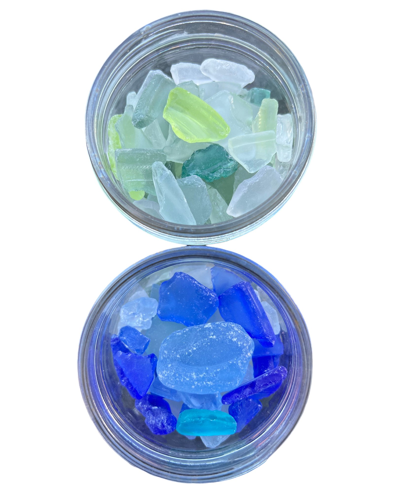 Two jars of sea glass
