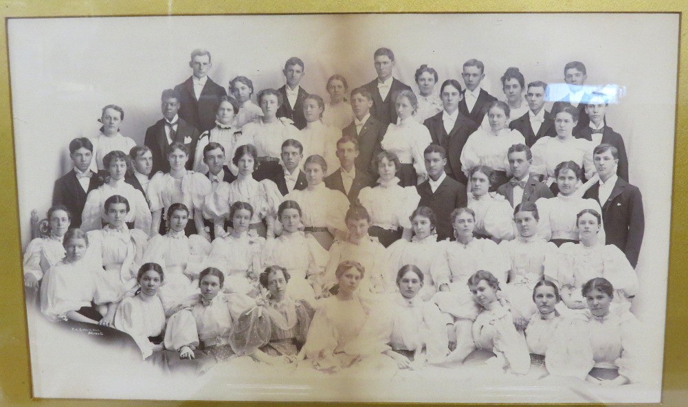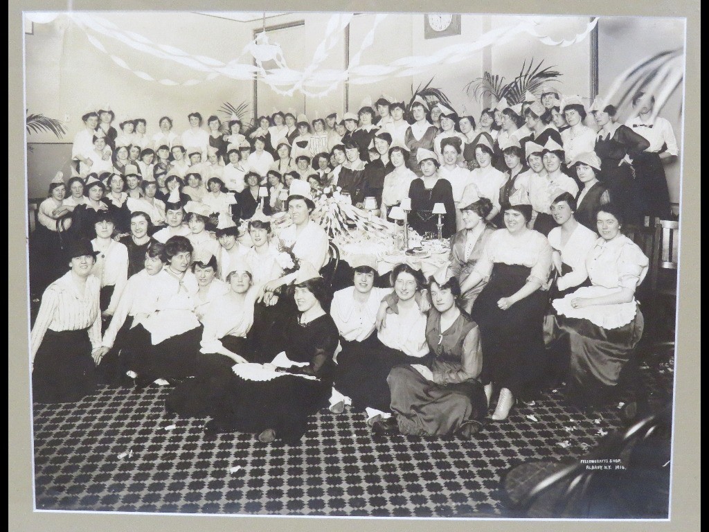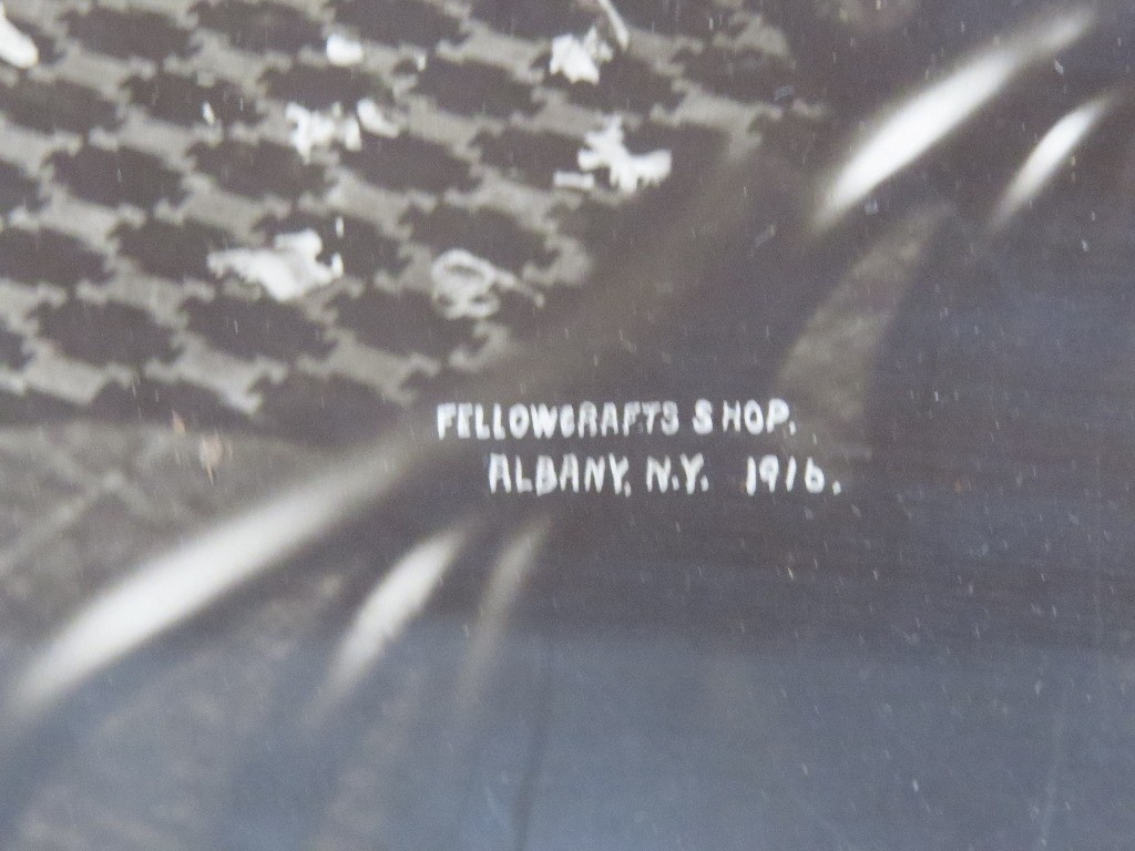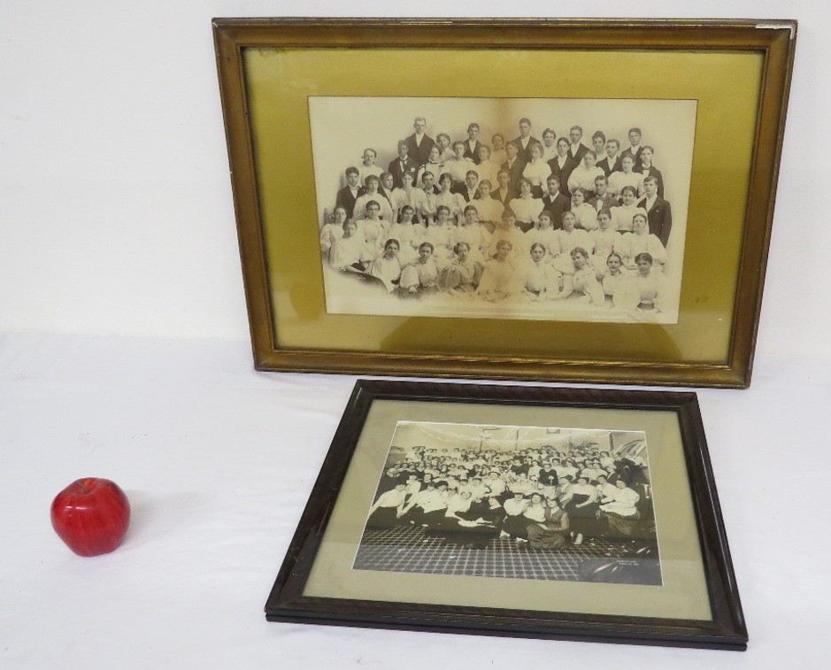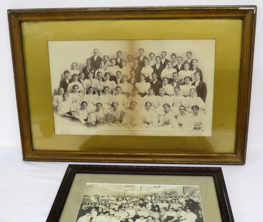 Larger image is unidentified but appears to be a class photograph of some sort, toning down the center. Smaller image is of the Fellowcrafts Shop in Albany, NY dated 1916. The Fellowcrafts Photo Shop was a commercial photography studio and publisher located in Albany, New York during the early to mid-20th century. The larger photo measures 30.25" x 20.75" while the smaller image, which has been nicely matted & reframed, is 16.5" x 20.5".