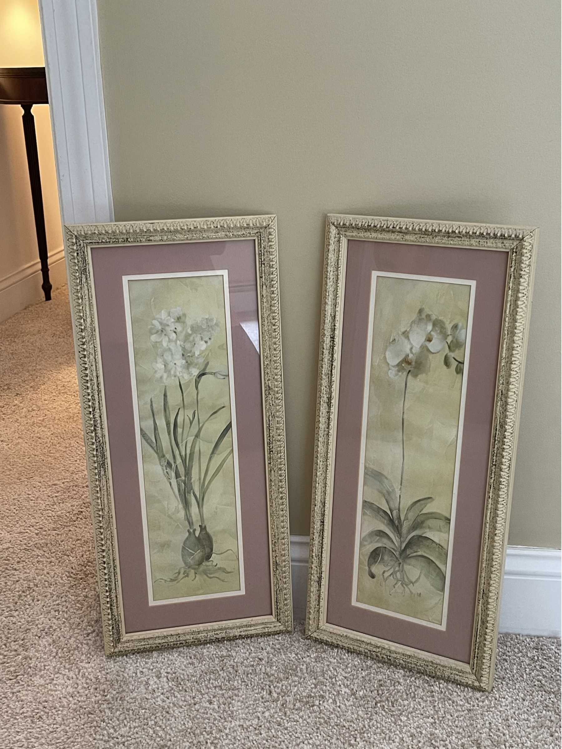 These two matching framed floral prints have a nice intentionally distressed frame that measures 10x22 inches.