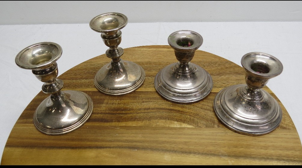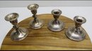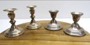 Two pair of mid-century weighted sterling candlesticks, different makers.