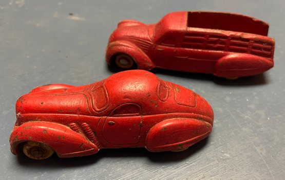 These two rubber cars are great survivors. Check condition in photos - they are very good for their age.