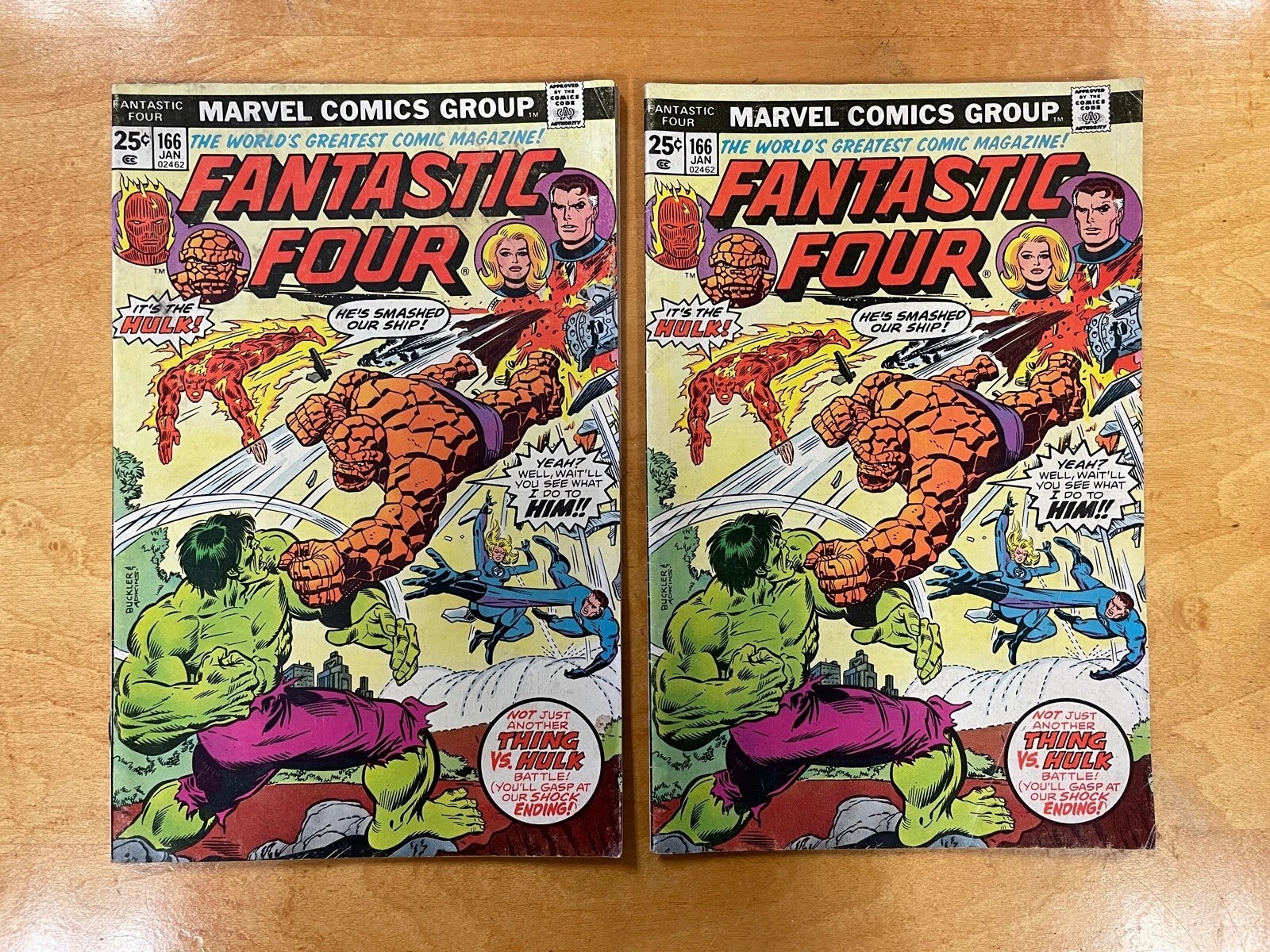 Two Vintage Marvel Fantastic Four Comic Books Vol 166 January 1976 Ft. The Hulk!