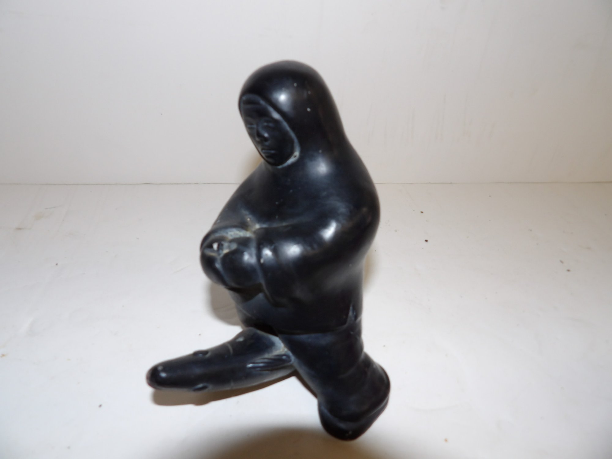 Inuit Stone Sculpture Of Figure With Fish Missing Spear