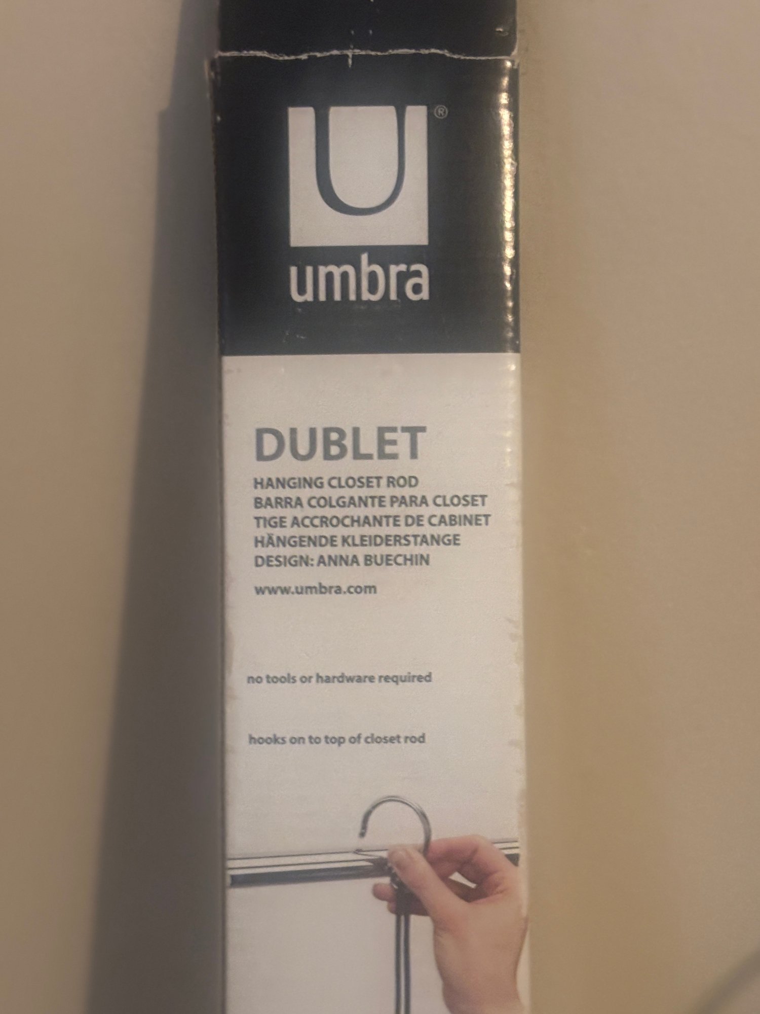 Smart, space-saving closet solution from Umbra. The Dublet Hanging Closet Rod creates an instant second hanging level beneath your existing rod, helping maximize vertical storage without tools or permanent installation.