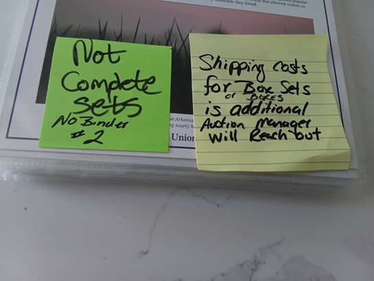 see pictures, no binder & not complete sets