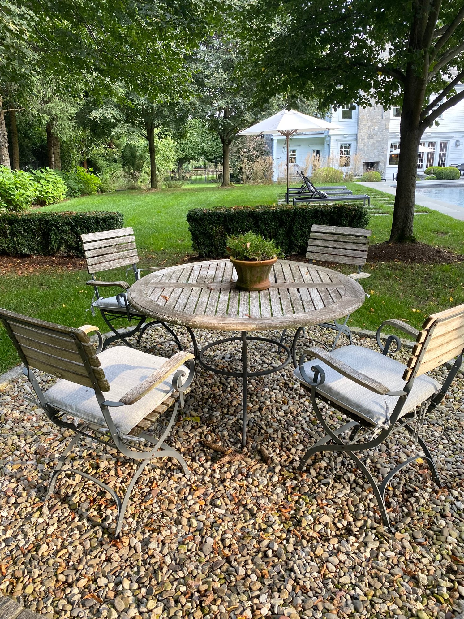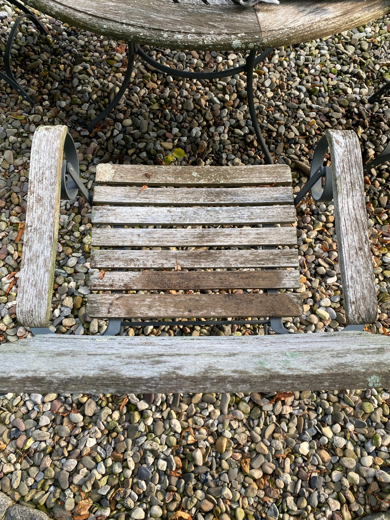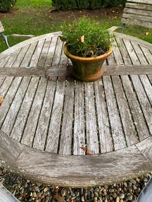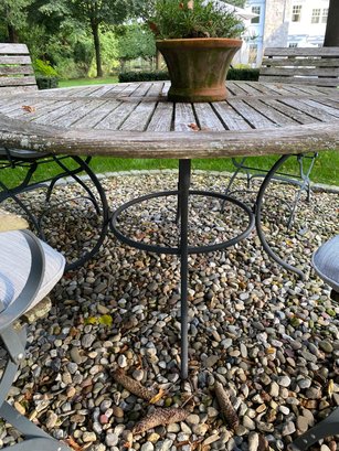 with four cafe style chairs. Wood has a weathered
