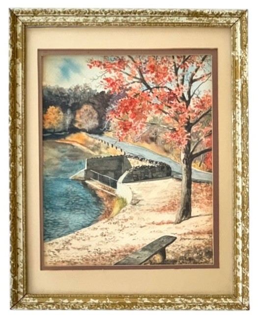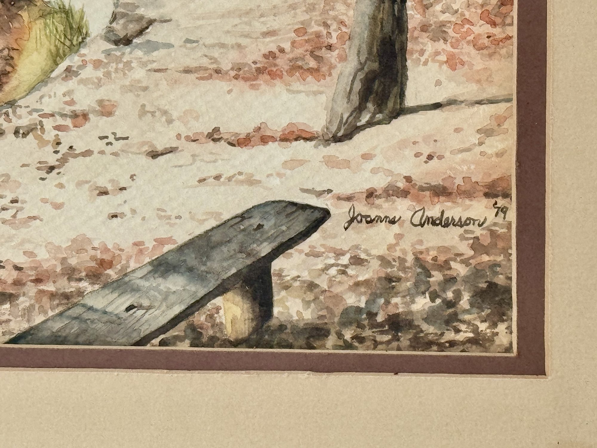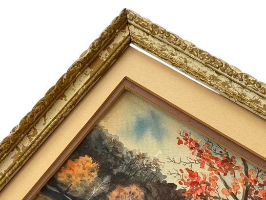Lovely original watercolor signed and dated 1979. In painted wood and gold frame with matting.