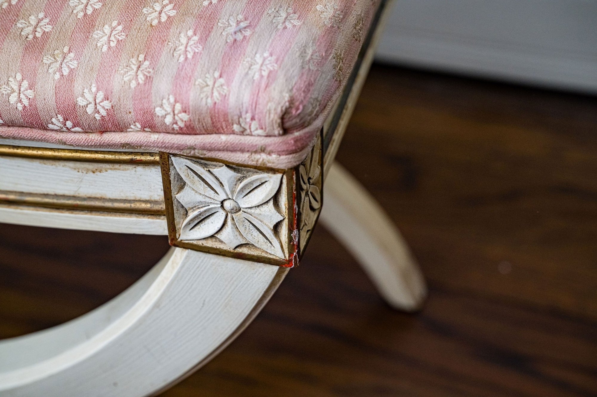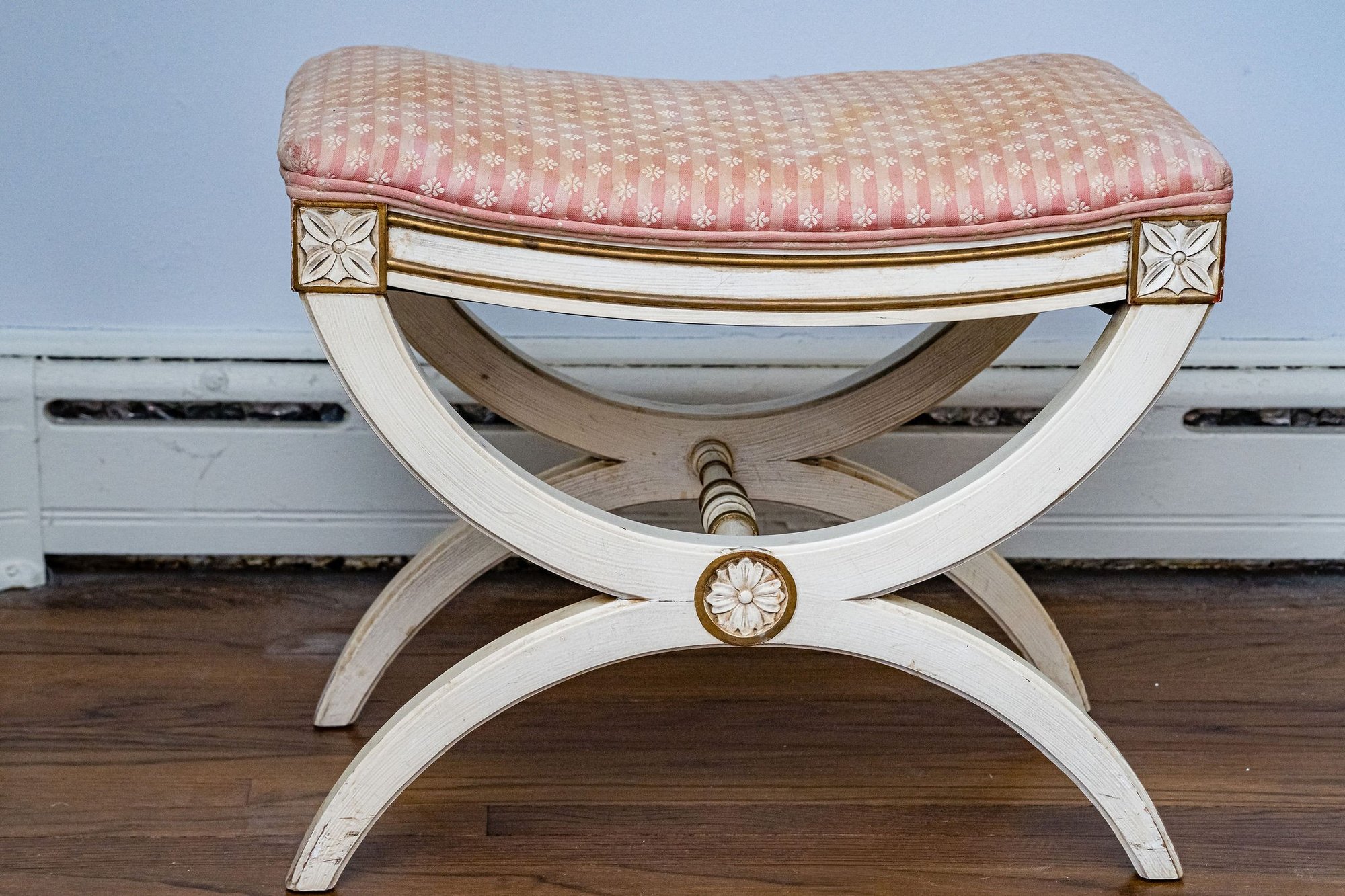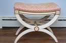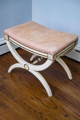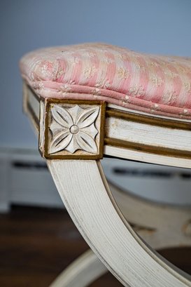 A functional stool or small bench with a lovely design, blending French Neoclassicism with Swedish influence and rustic charm.