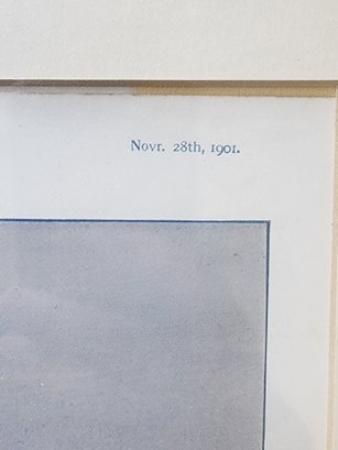 22 by 28 inches, matted and framed