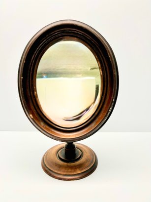 Charming vintage wooden vanity mirror with a sturdy base and warm wood tone, perfect for a dresser, vanity table, or as an accent piece in any room.