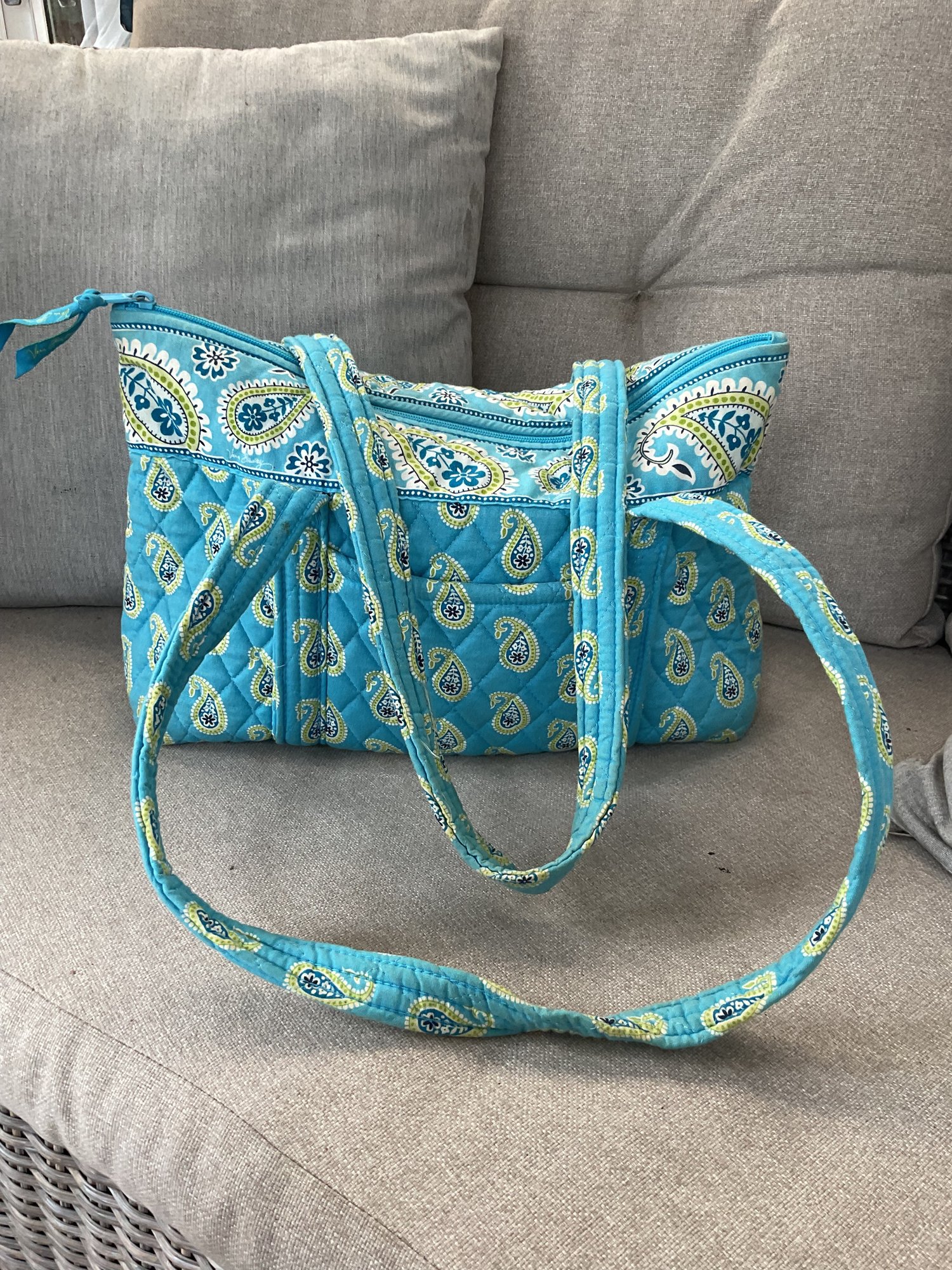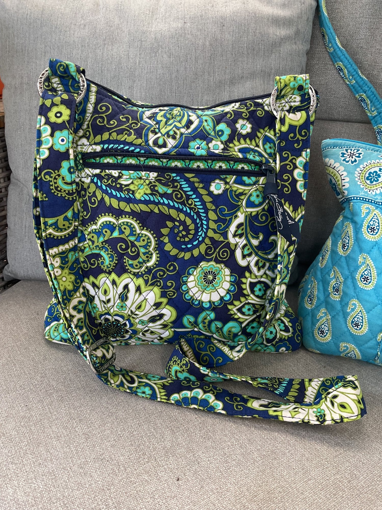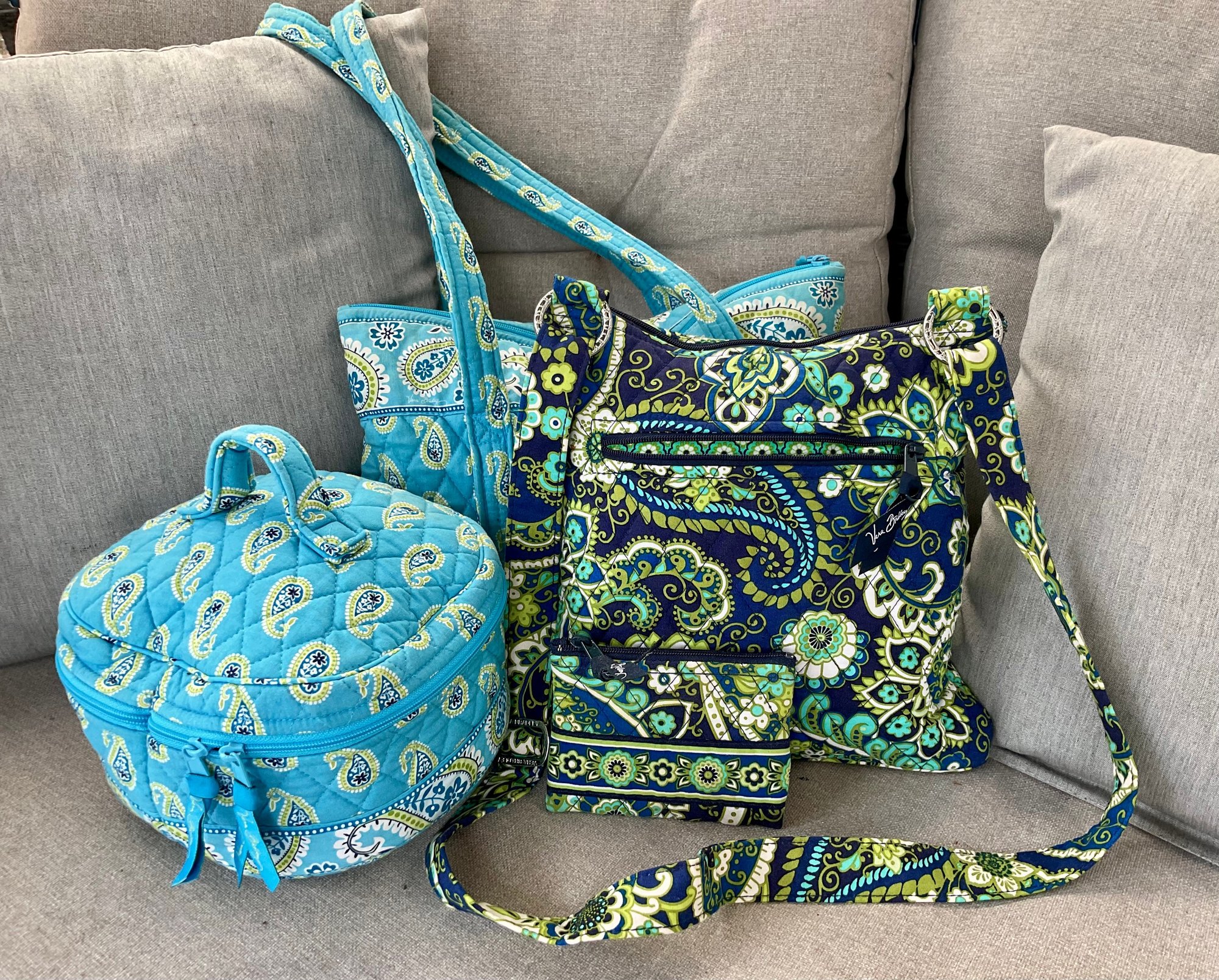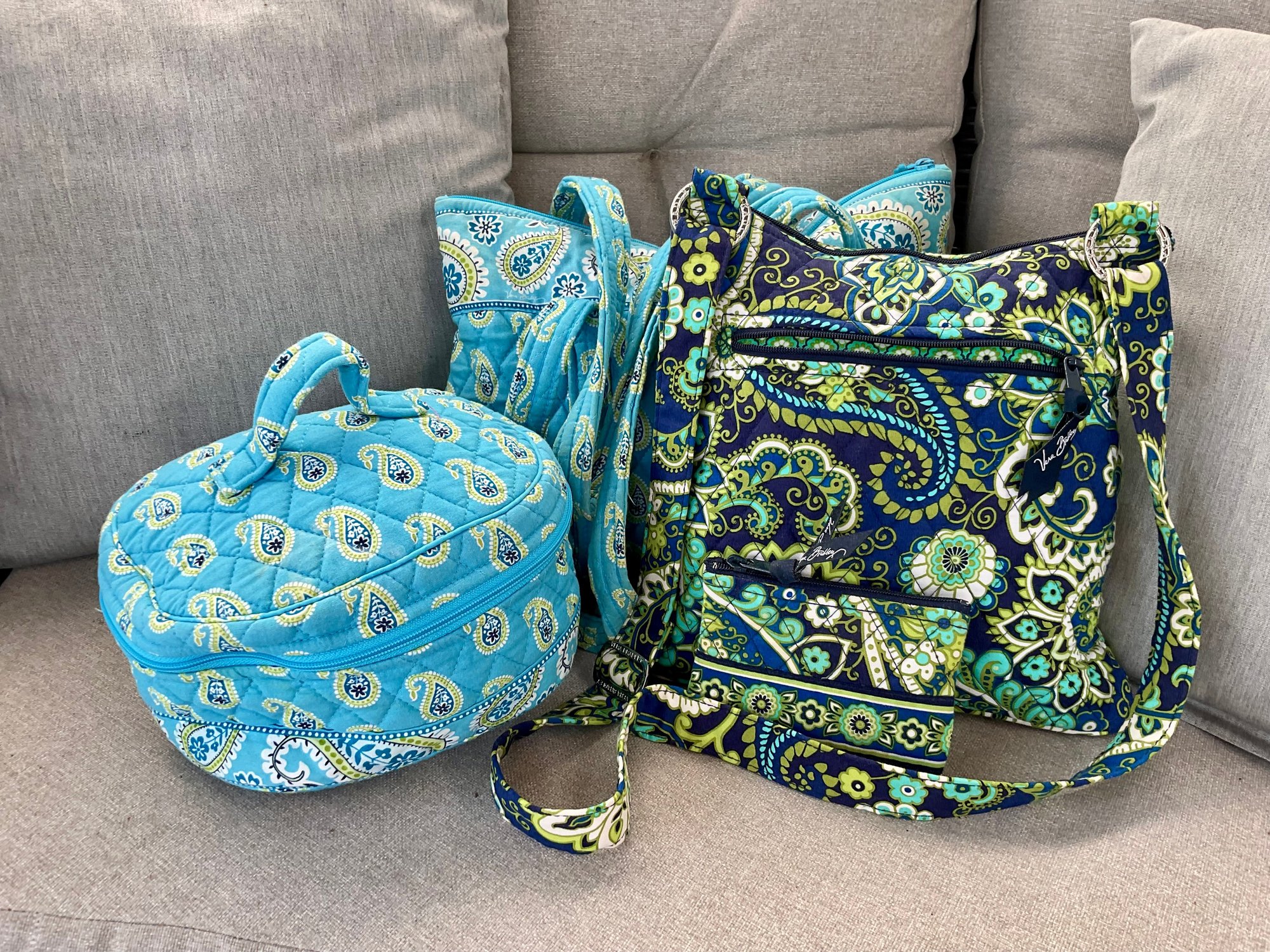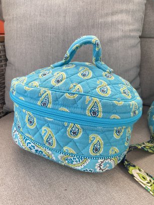 This lot features a vibrant three-piece collection from Vera Bradley, showcasing the brand’s signature quilted cotton construction and intricate paisley patterns. The set includes a versatile mix of styles, perfect for travel or daily organization.