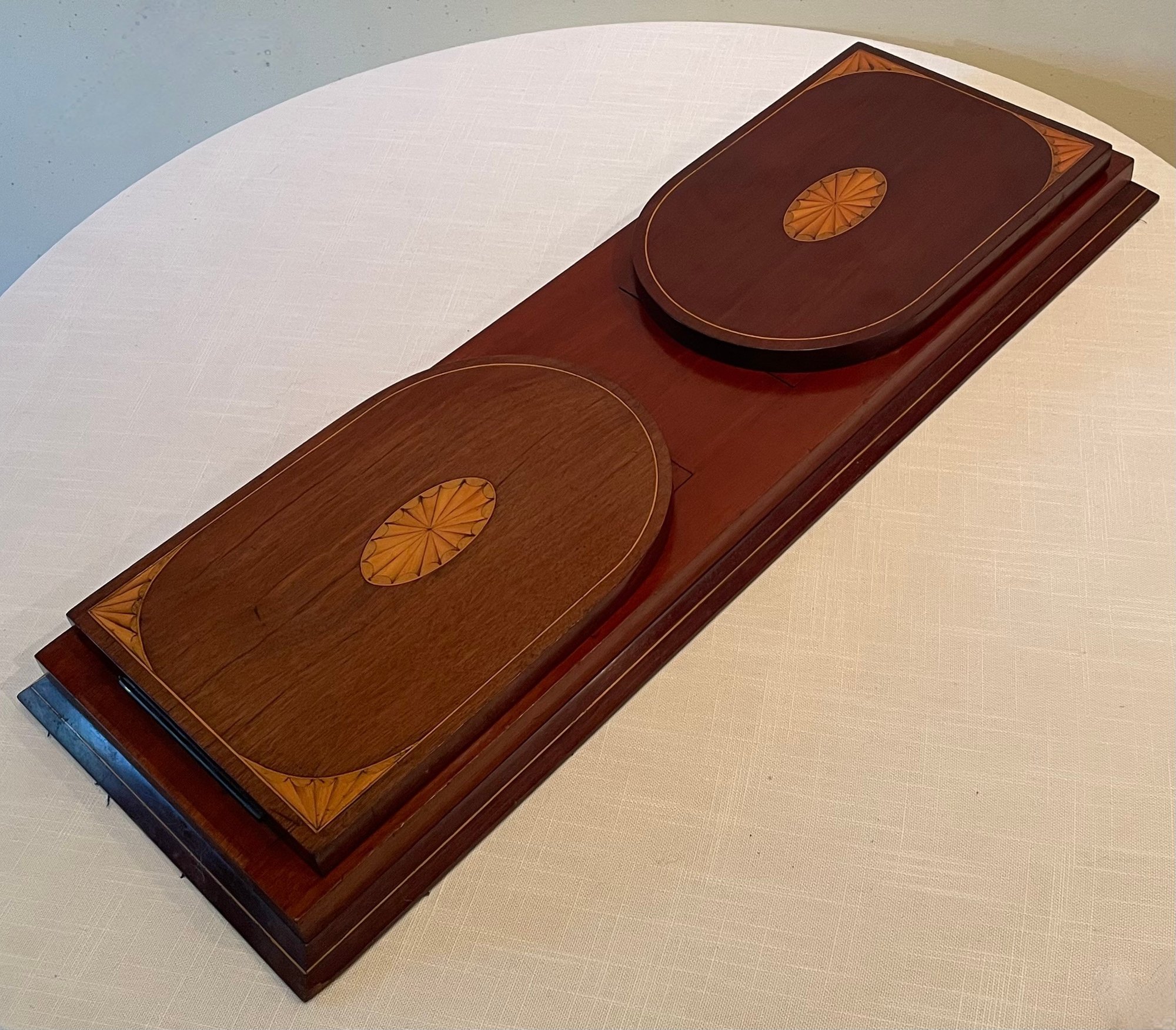 A very special set of folding adjustable bookends. They are heavy and well made with beautiful wood inlay. The condition is good with some wear due to age. Additionally one of the sides leans back a bit, and it may need an adjustment.