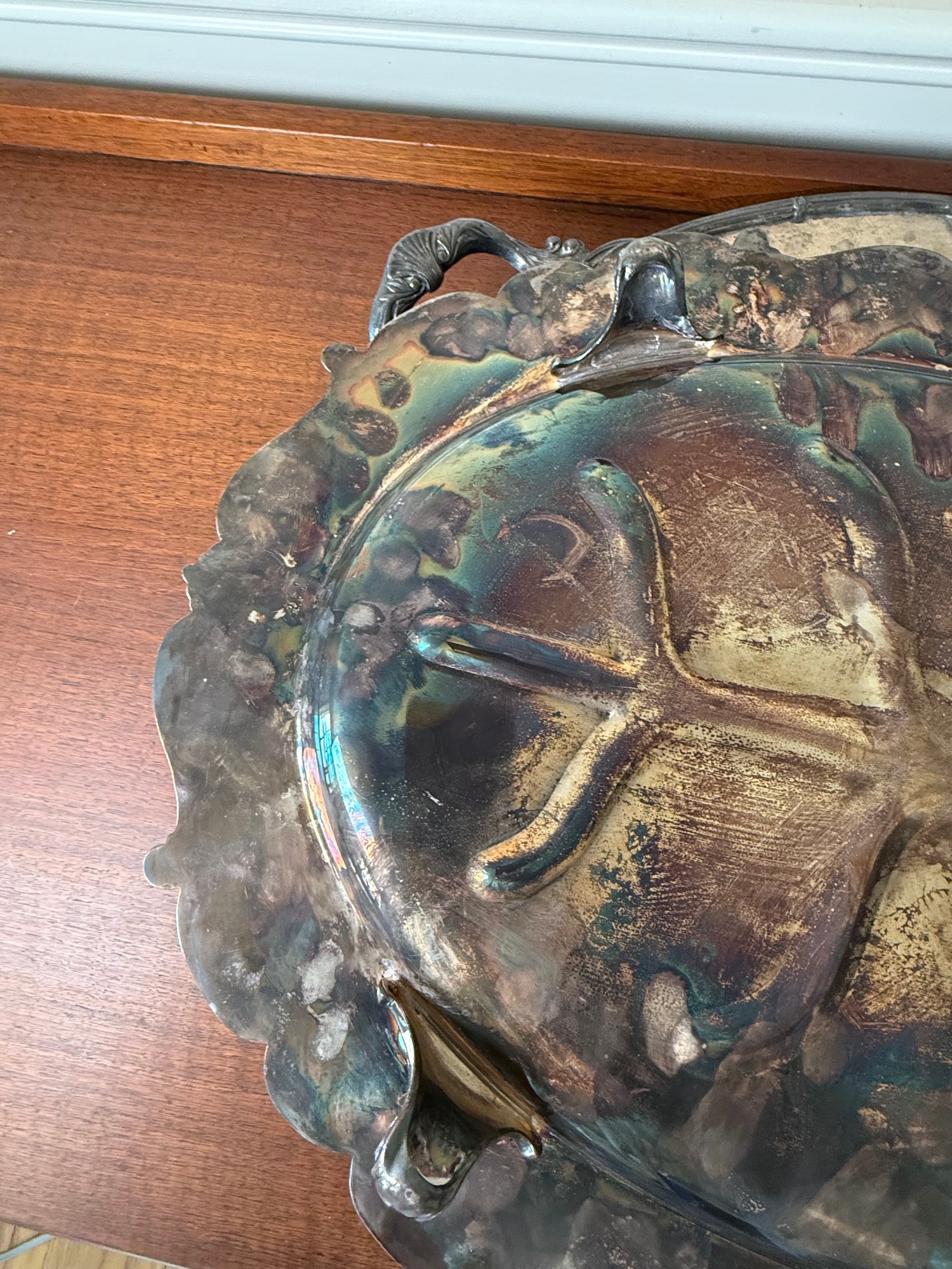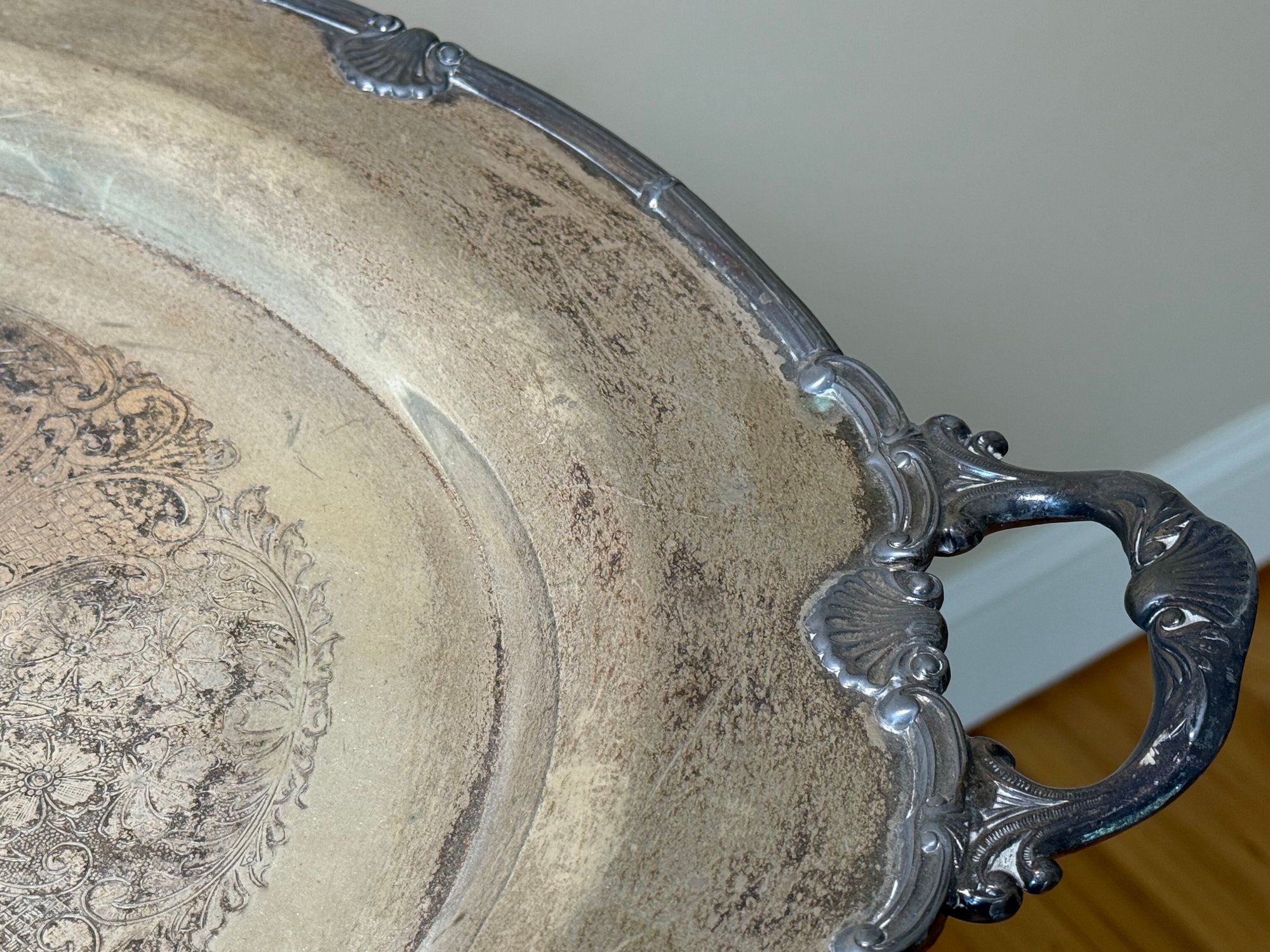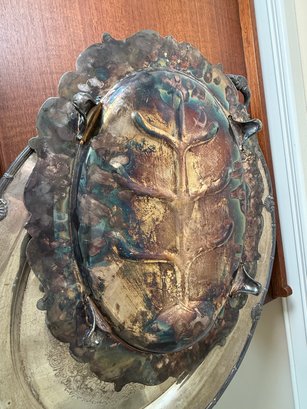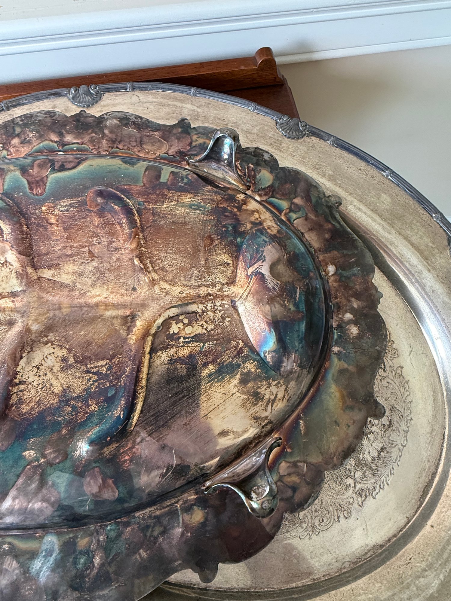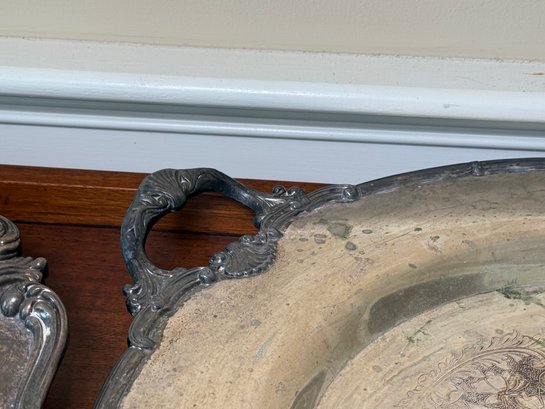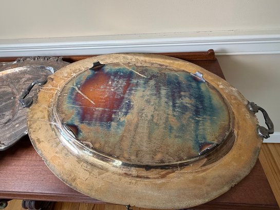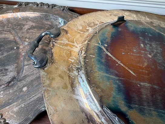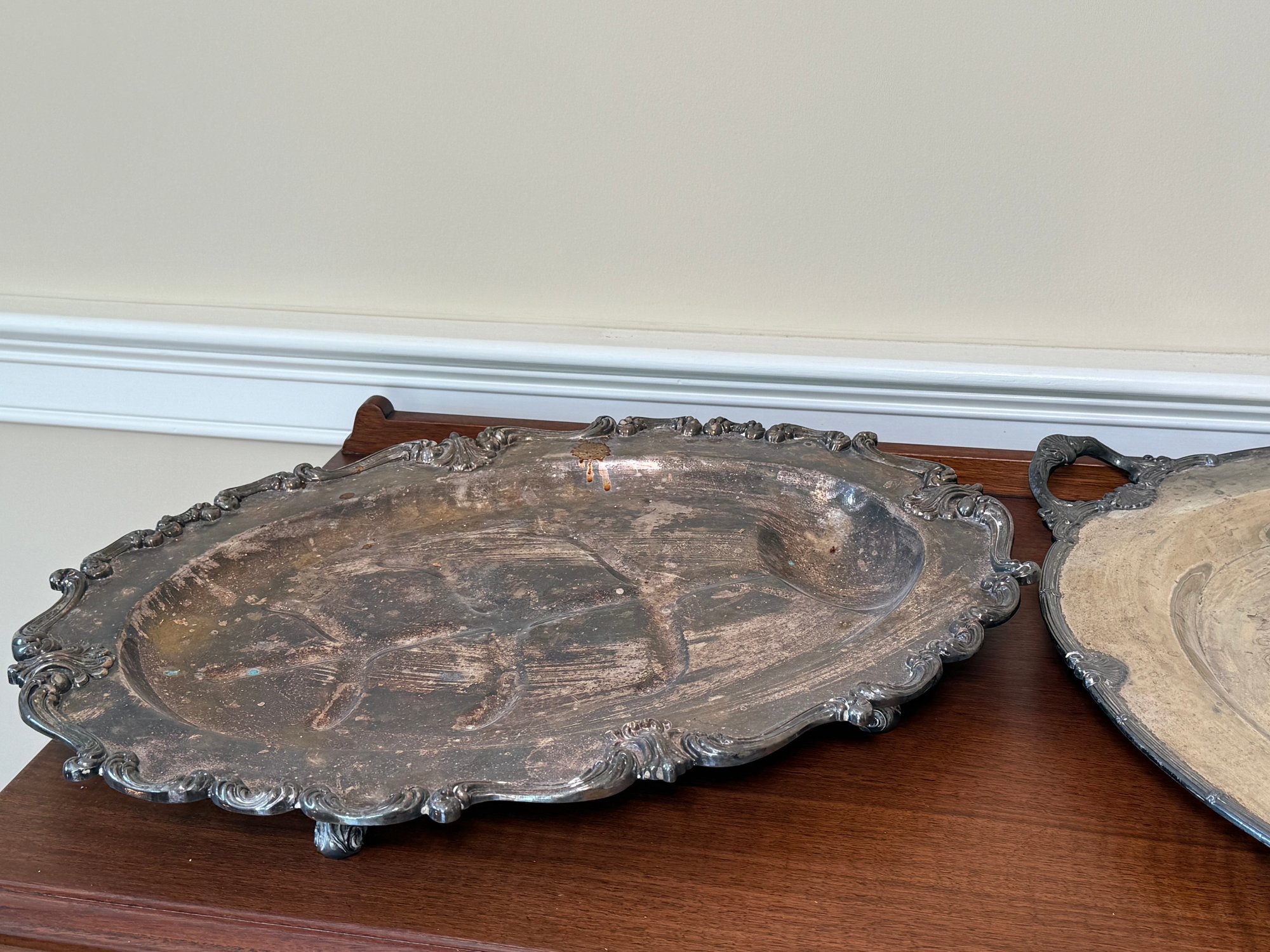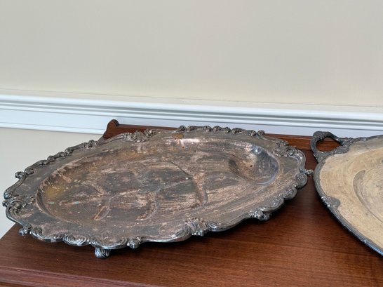 These platters show signs of vintage age such as tarnishing in areas, as seen in photos.