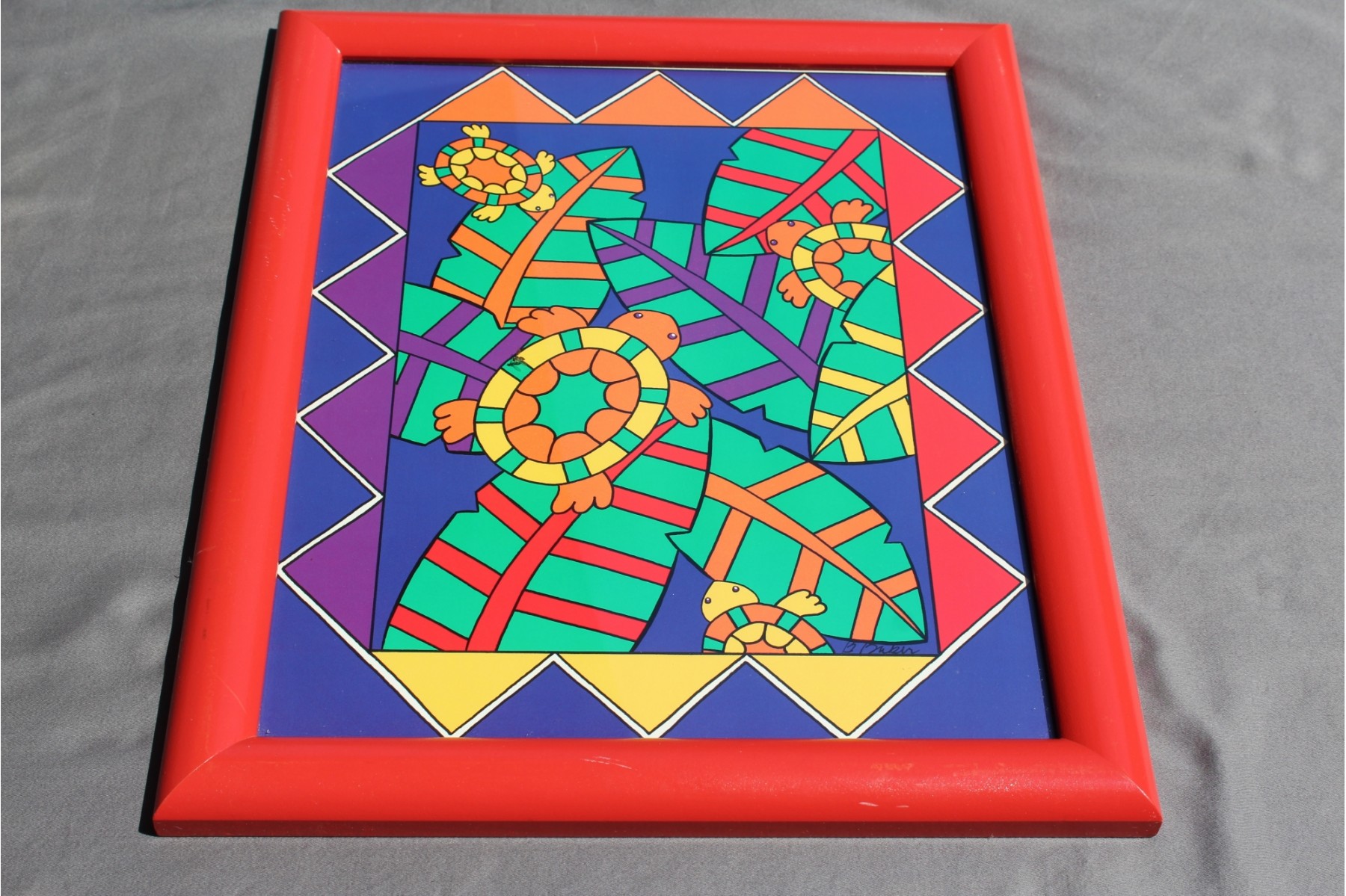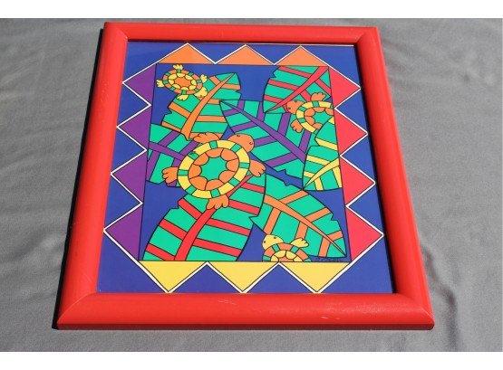Bright vibrant and well composed an attraction for the child. 16 x 13 framed, 13.5 x 10.5 visible, this is from the Gecko Line, artist signature on print, part of print
