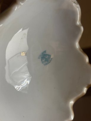 The base flares into a sculptural foot, giving the whole piece a grounded, architectural presence. The interior bears a vintage-style porcelain mark, consistent with late 19th to early 20th century decorative wares made for the European and American markets.