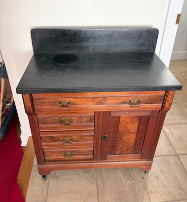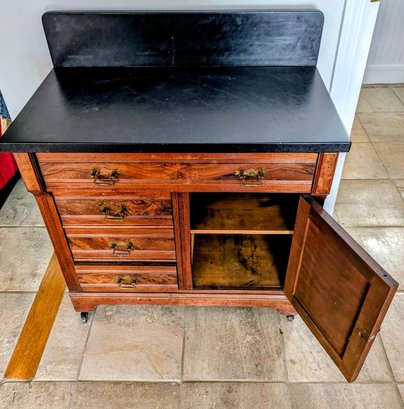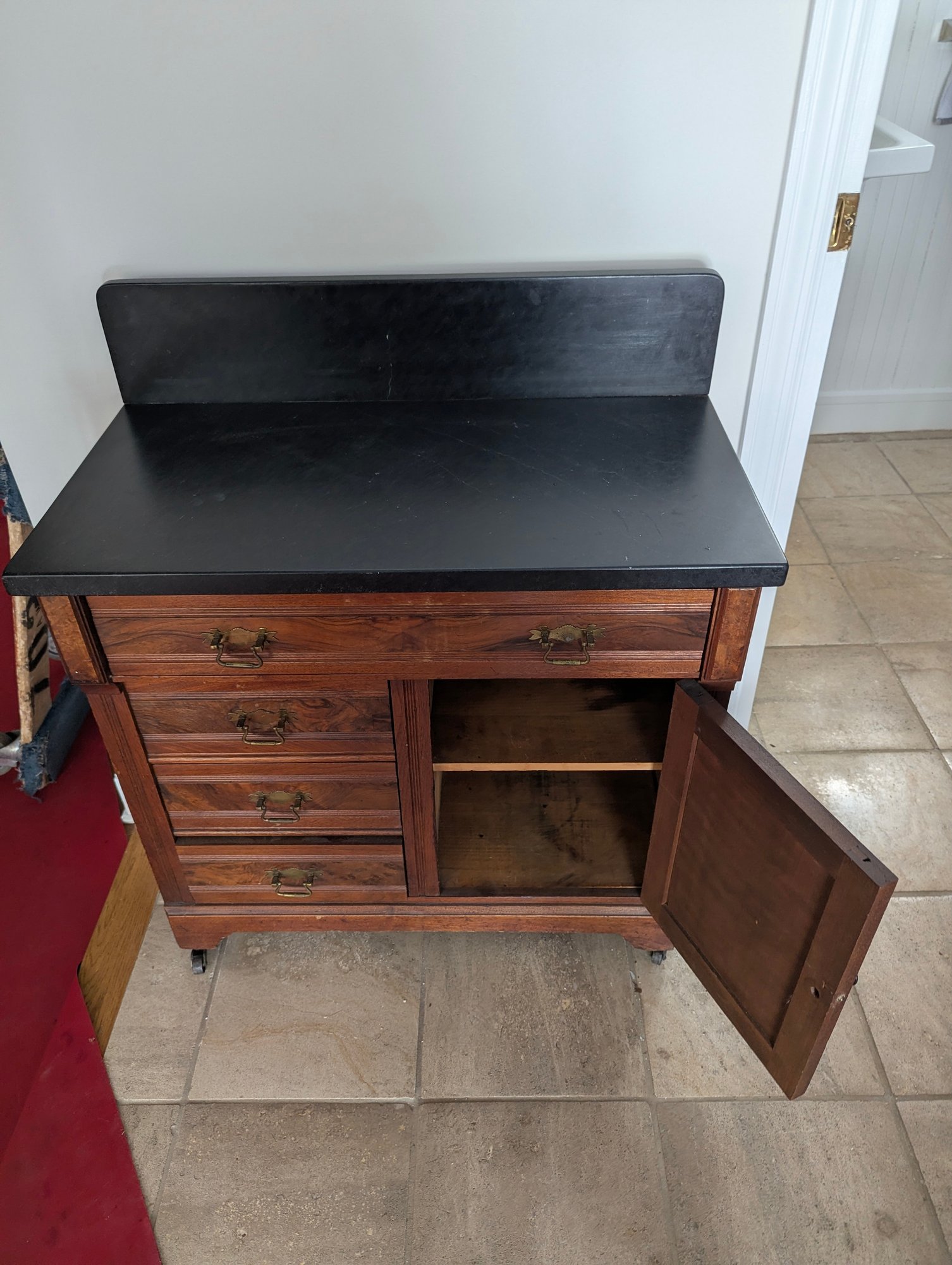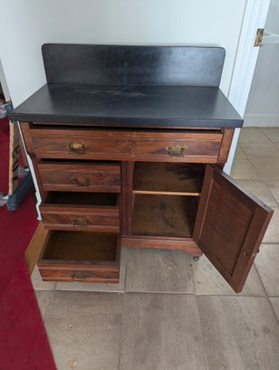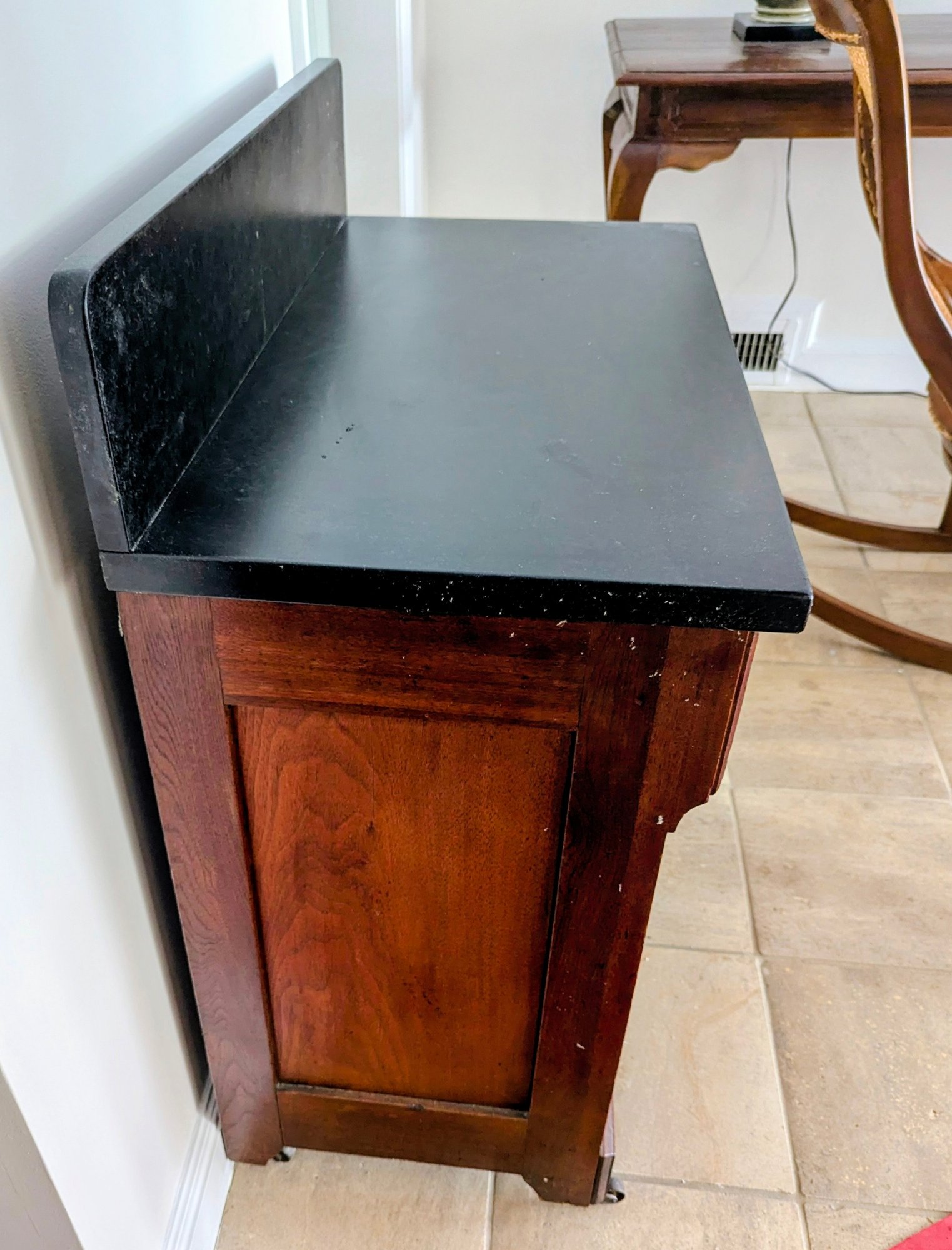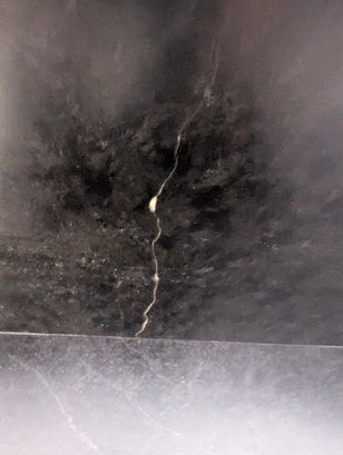 Cabinet in great condition but slight crack, located on elevated backsplash