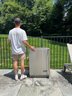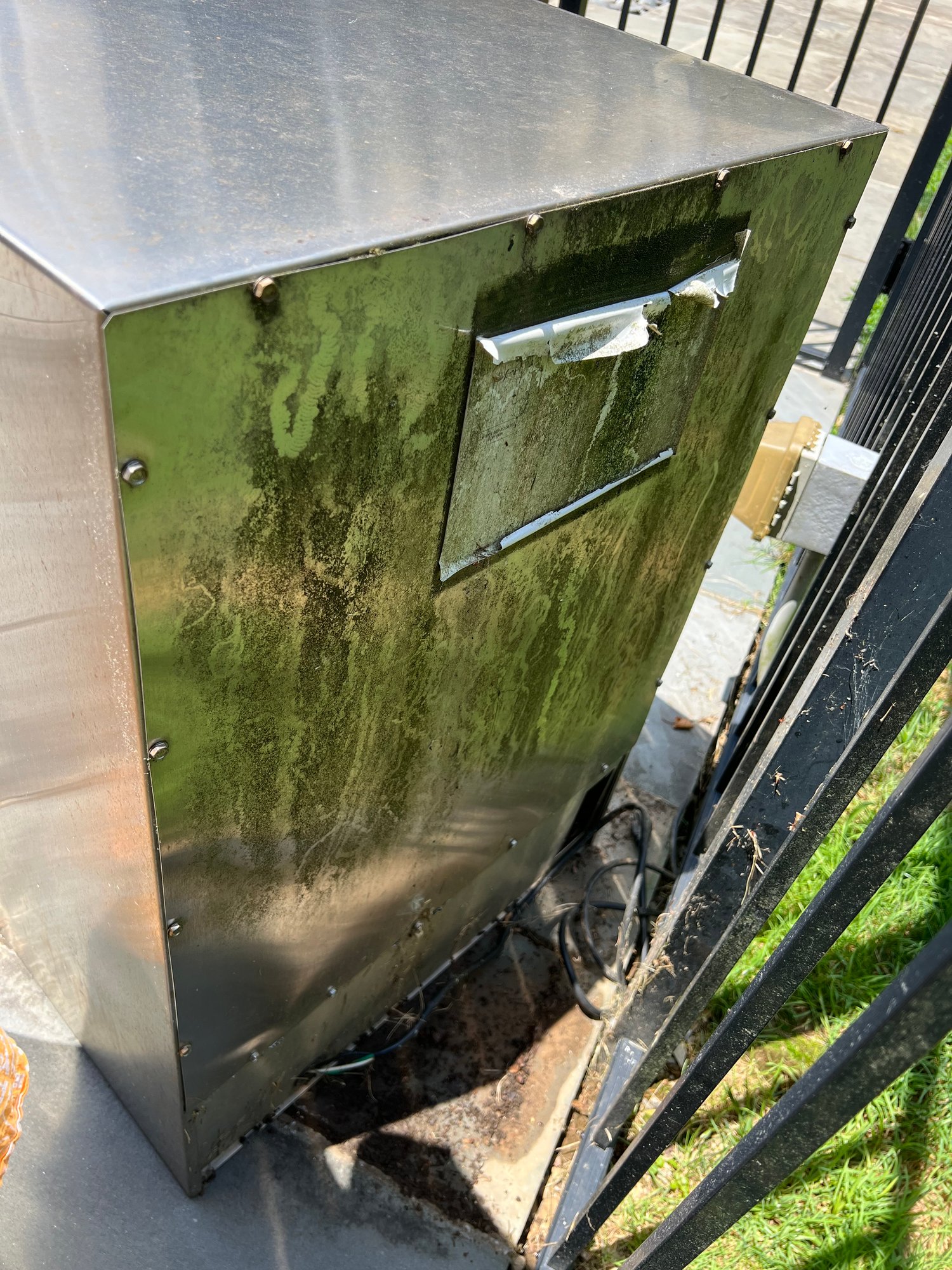 Is great for outdoor extra fridge, Back has finish distress