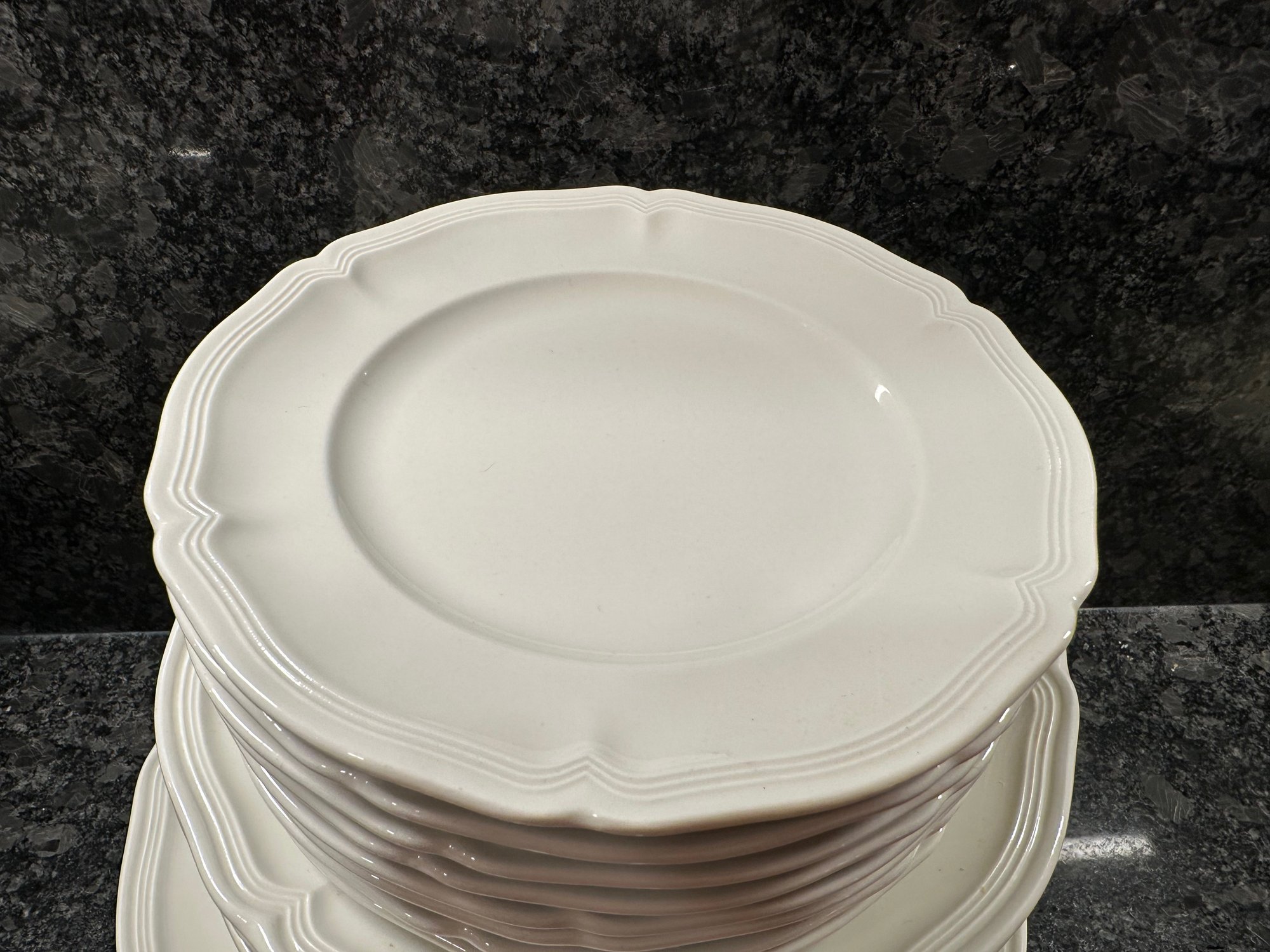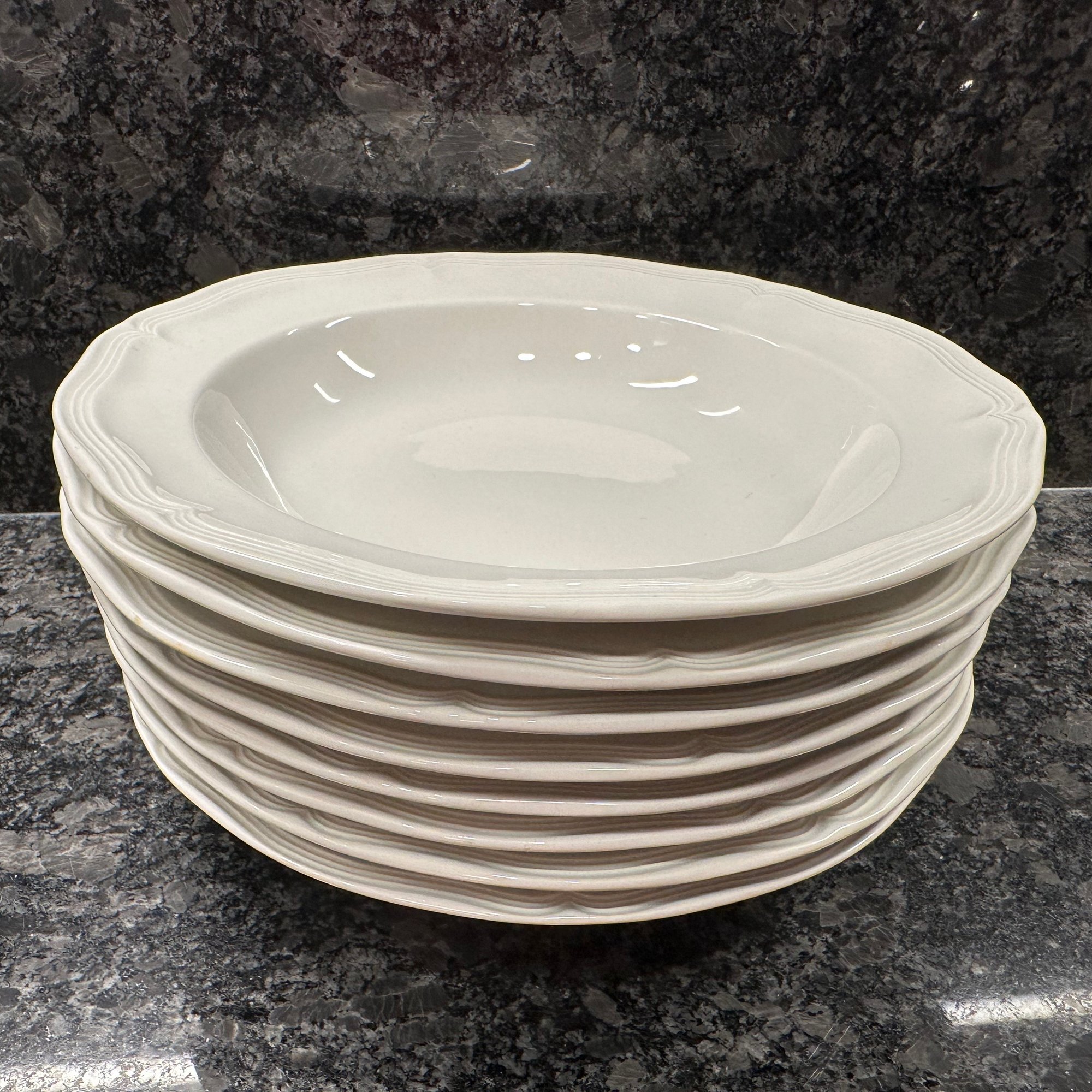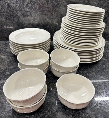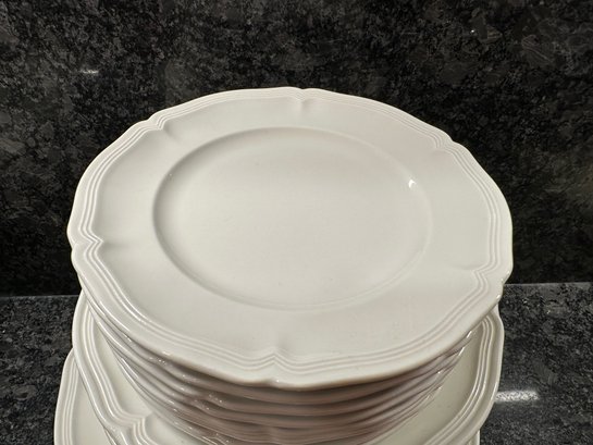 9 dinner plates, 12 salad plates, 8 dessert plates, 8 bowls, 7 dessert bowls