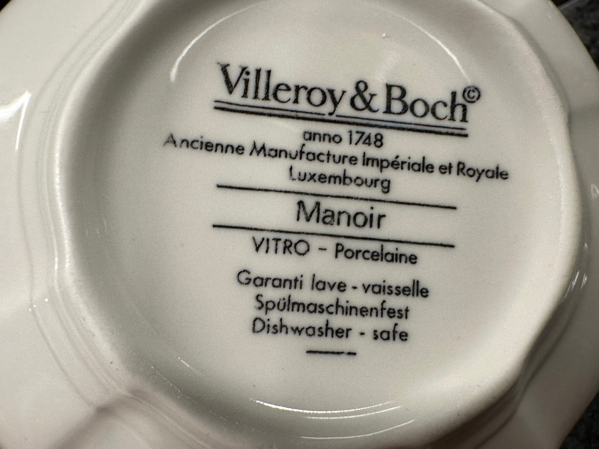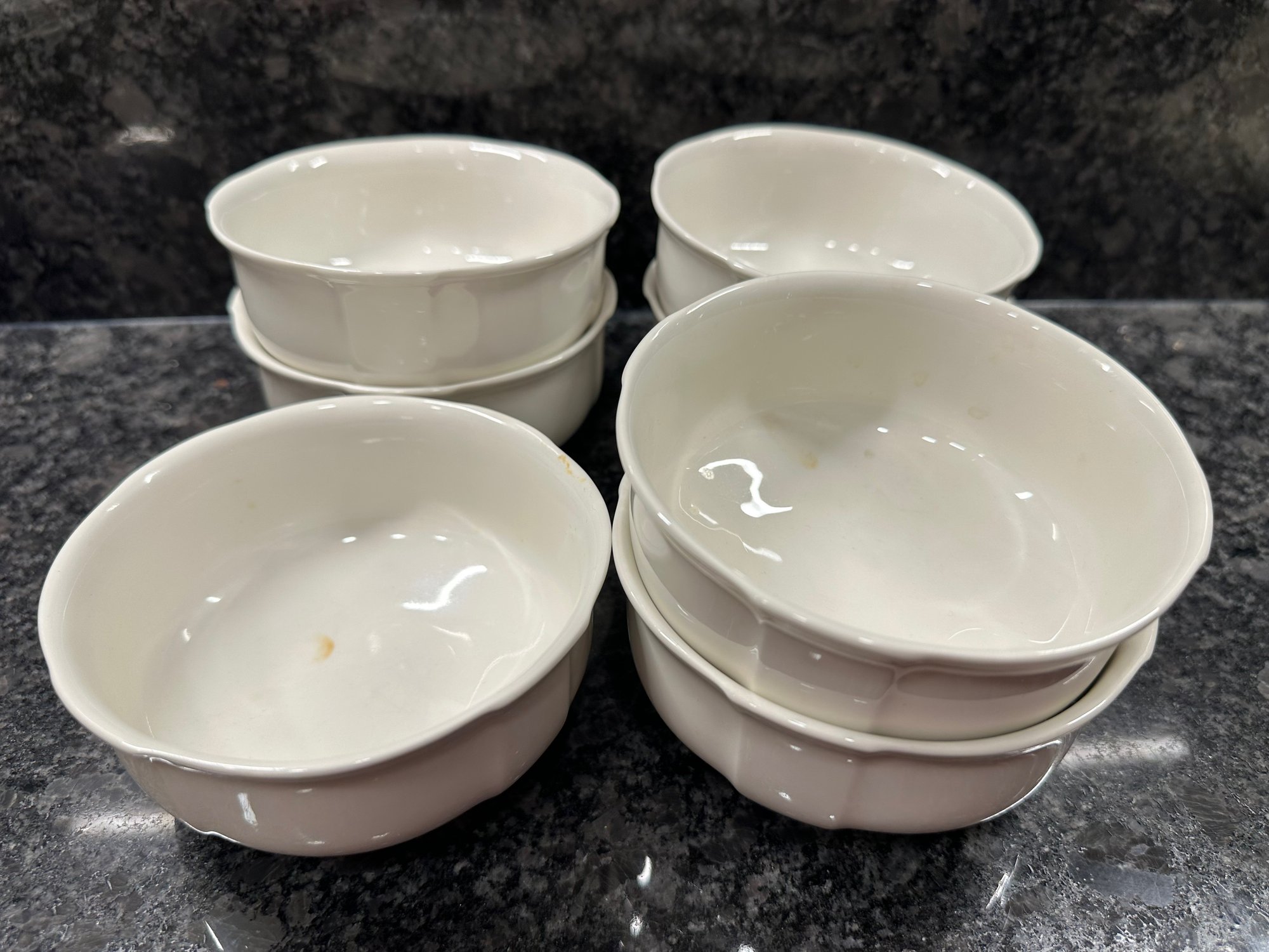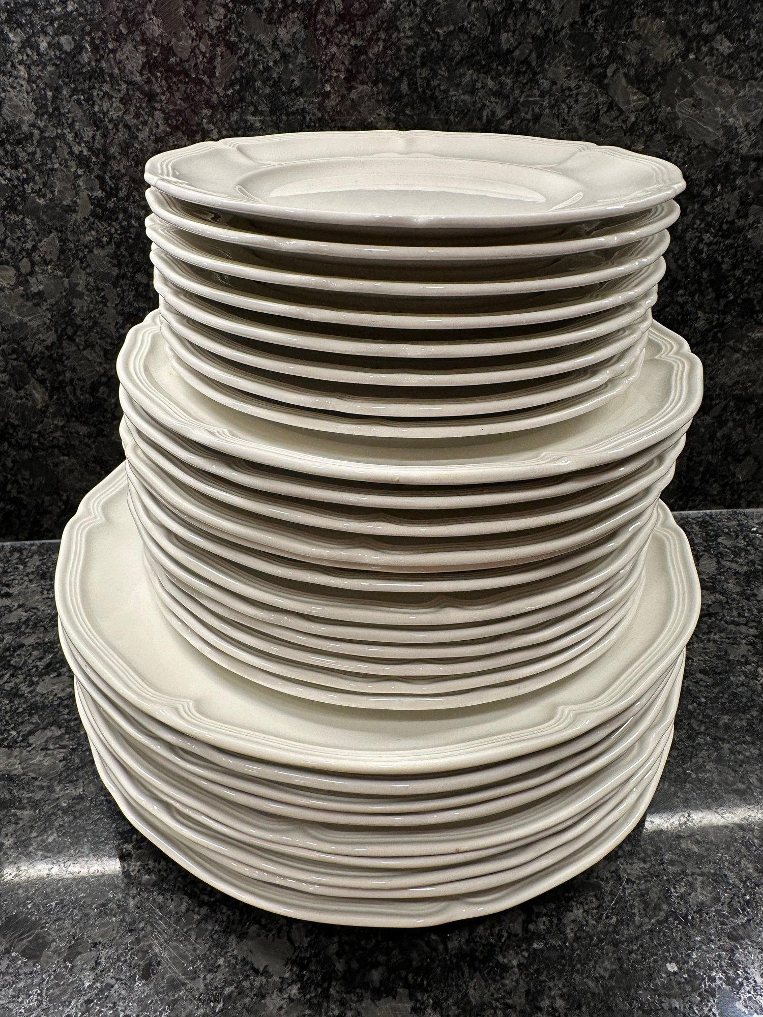 9 dinner plates, 12 salad plates, 8 dessert plates, 8 bowls, 7 dessert bowls