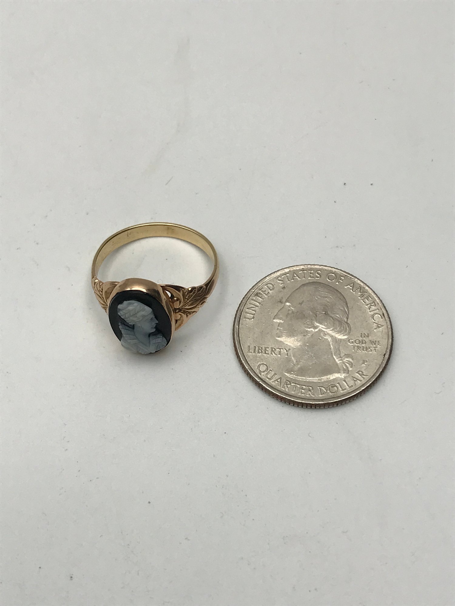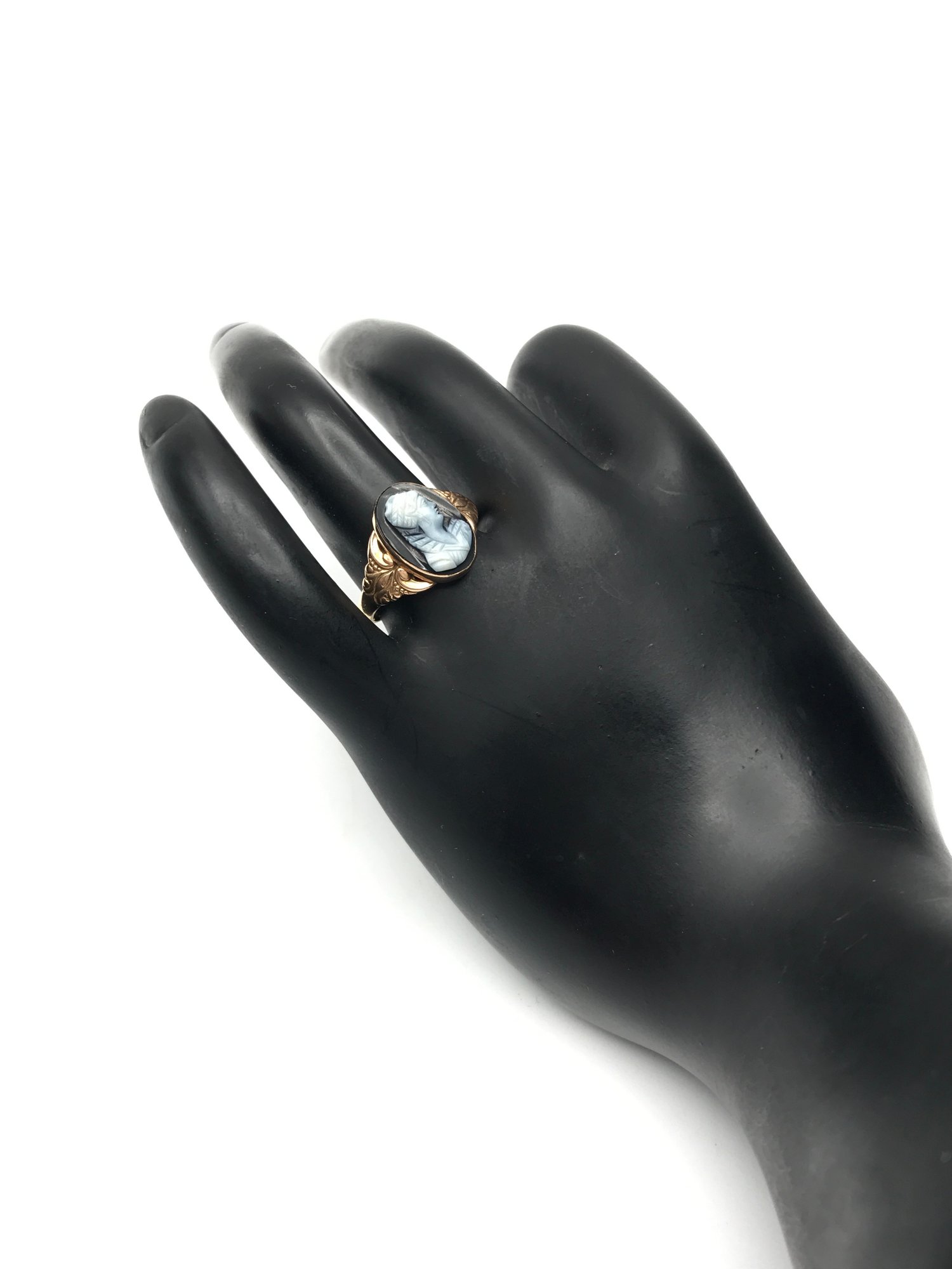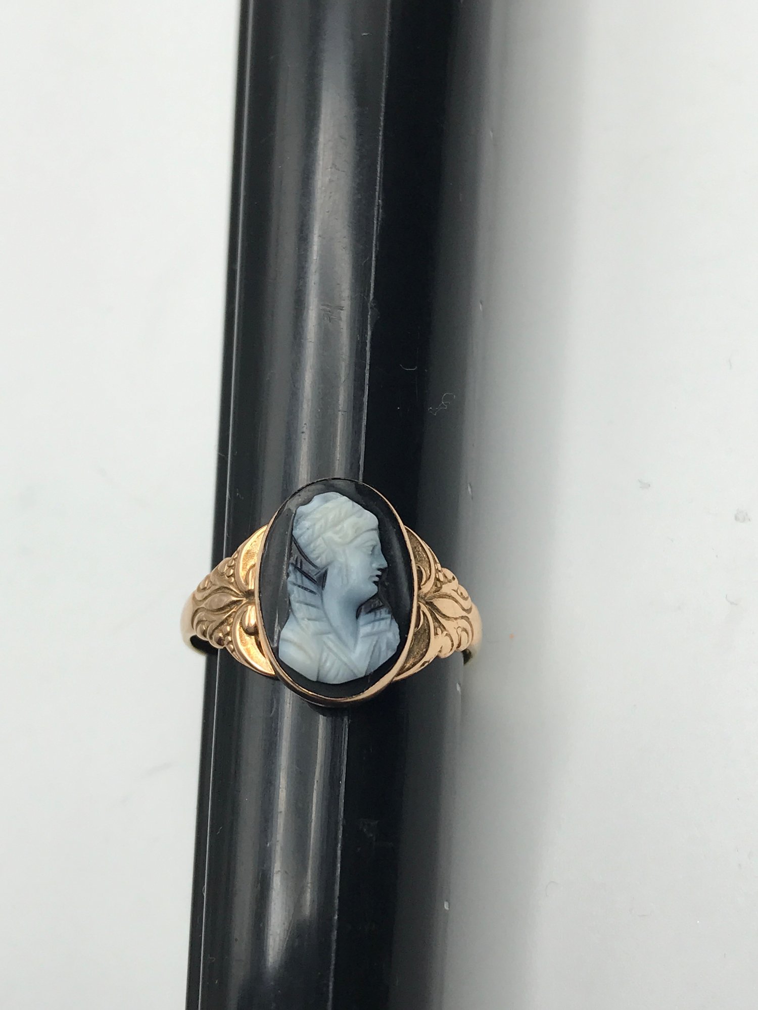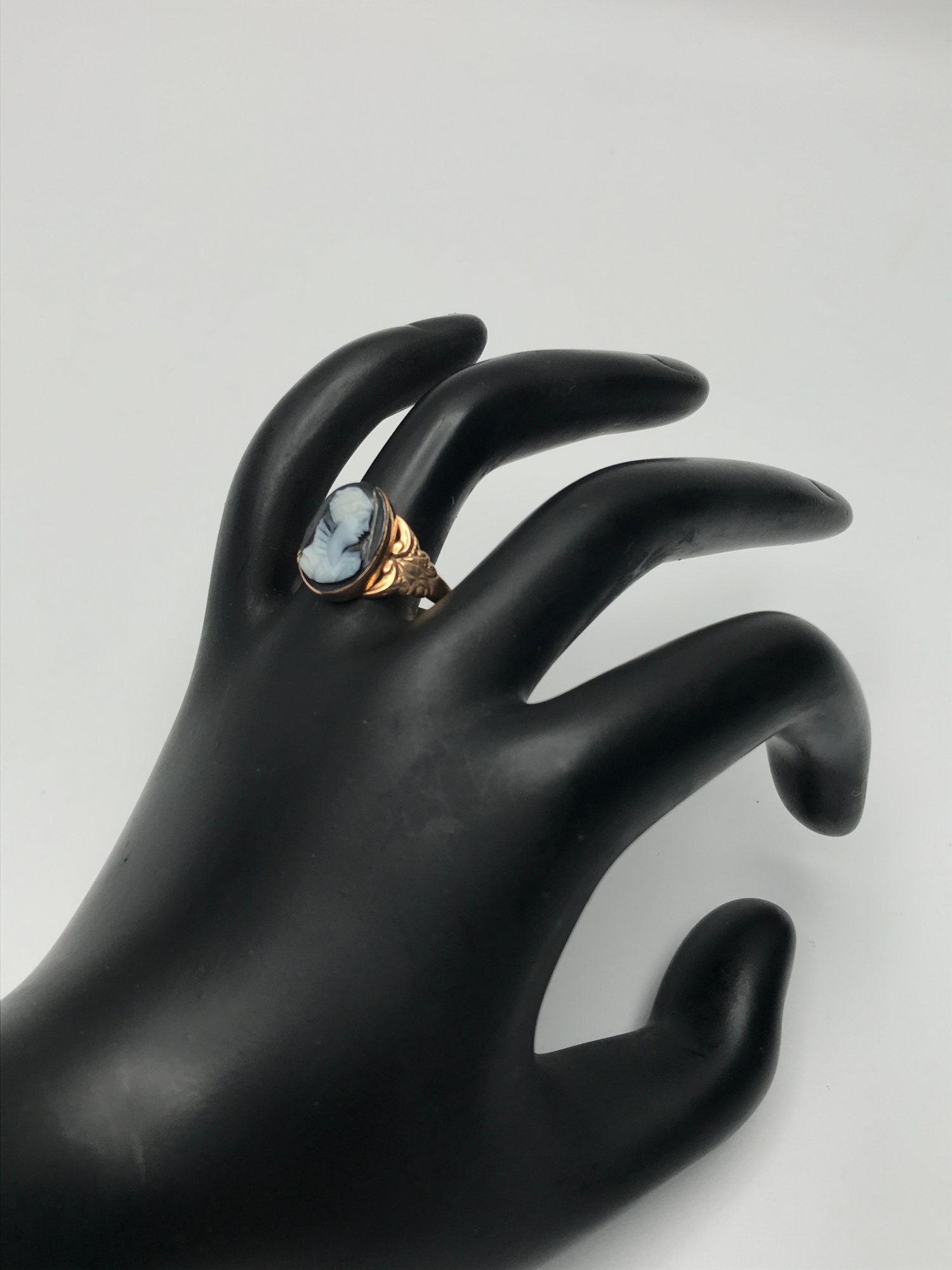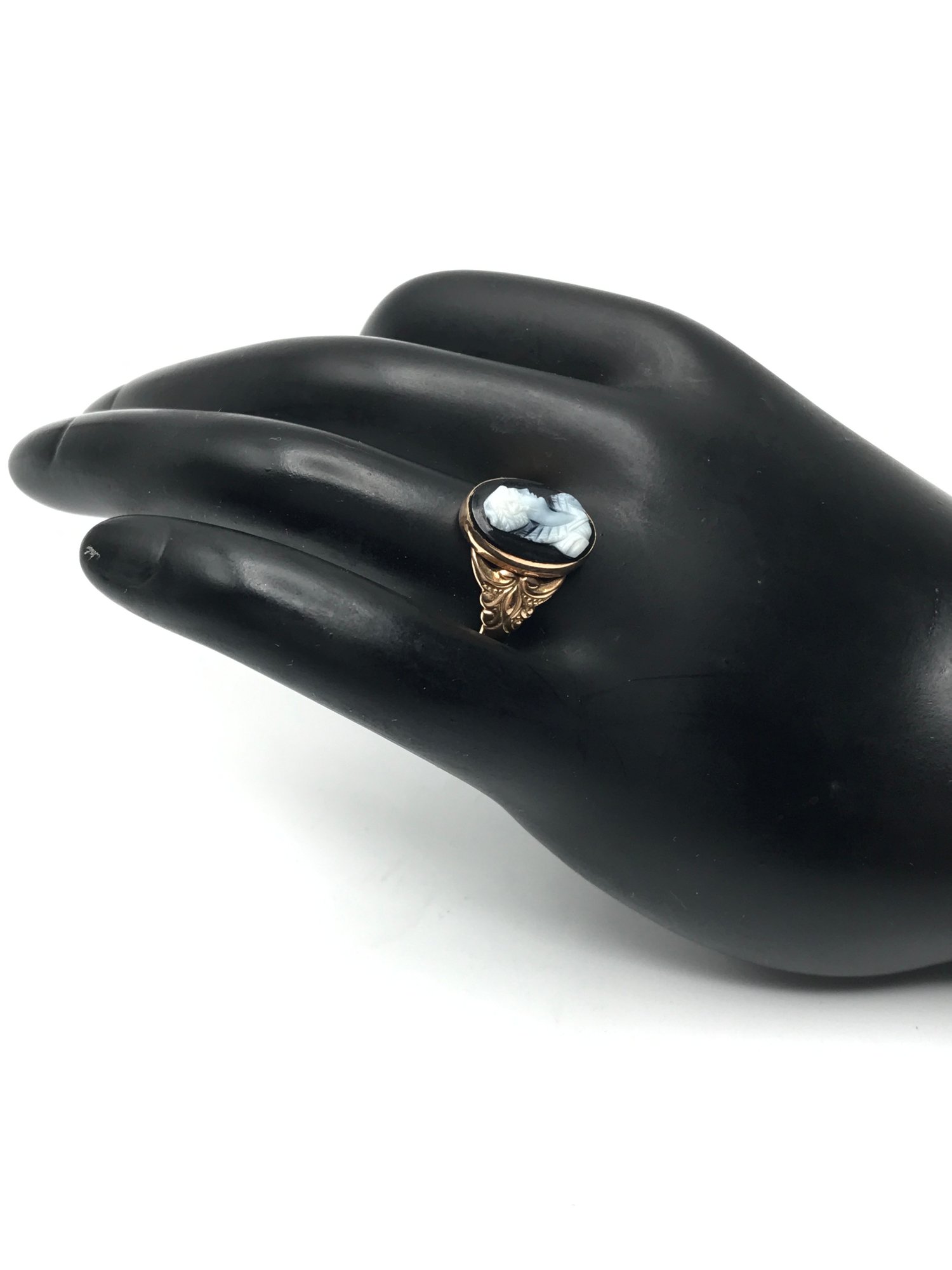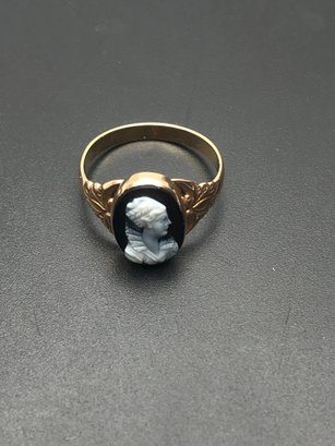 Vintage 10K Yellow Gold Black Onyx Cameo Ring