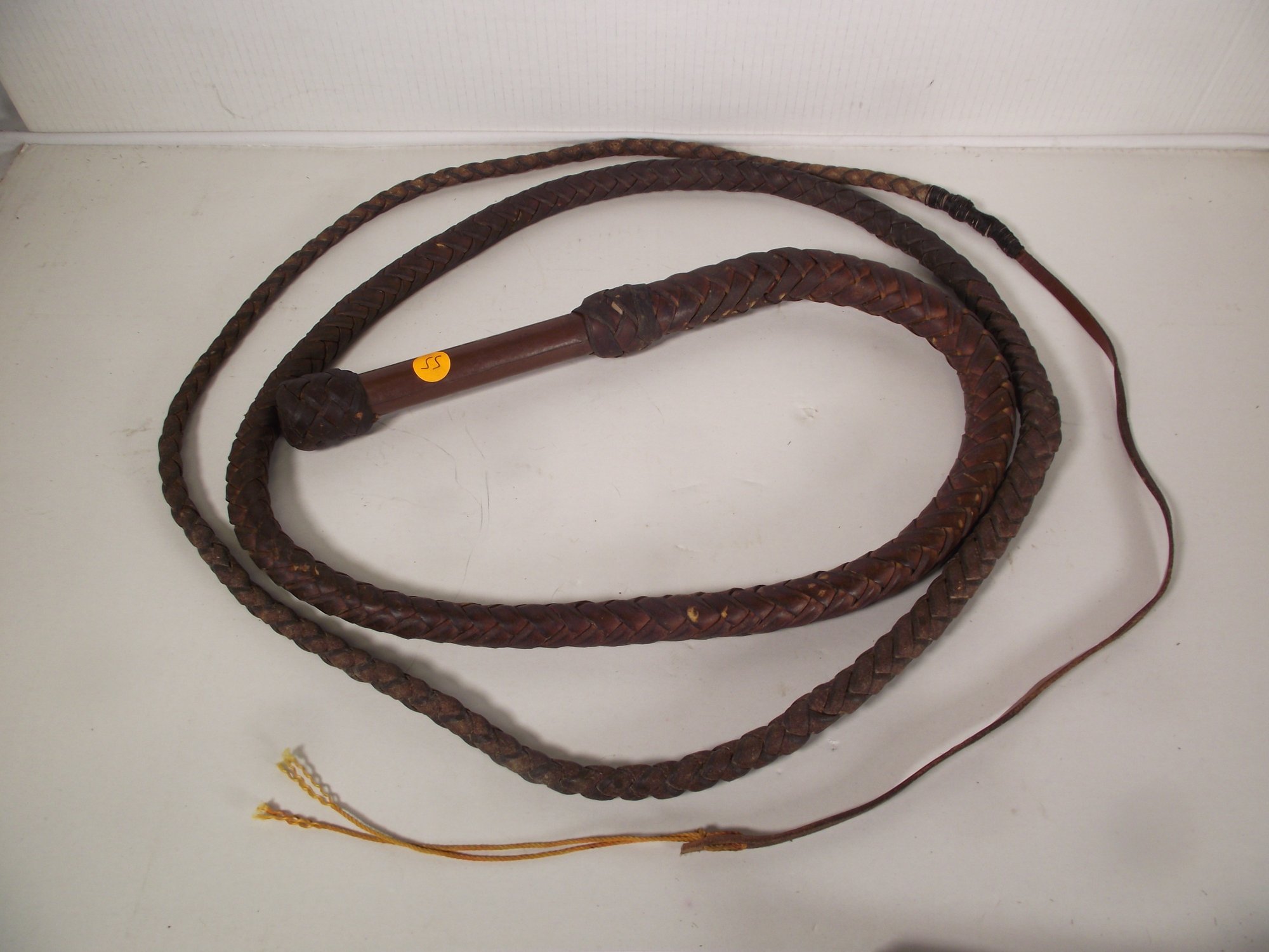 Vintage 11.5-Foot Leather Woven Whip - WOW!