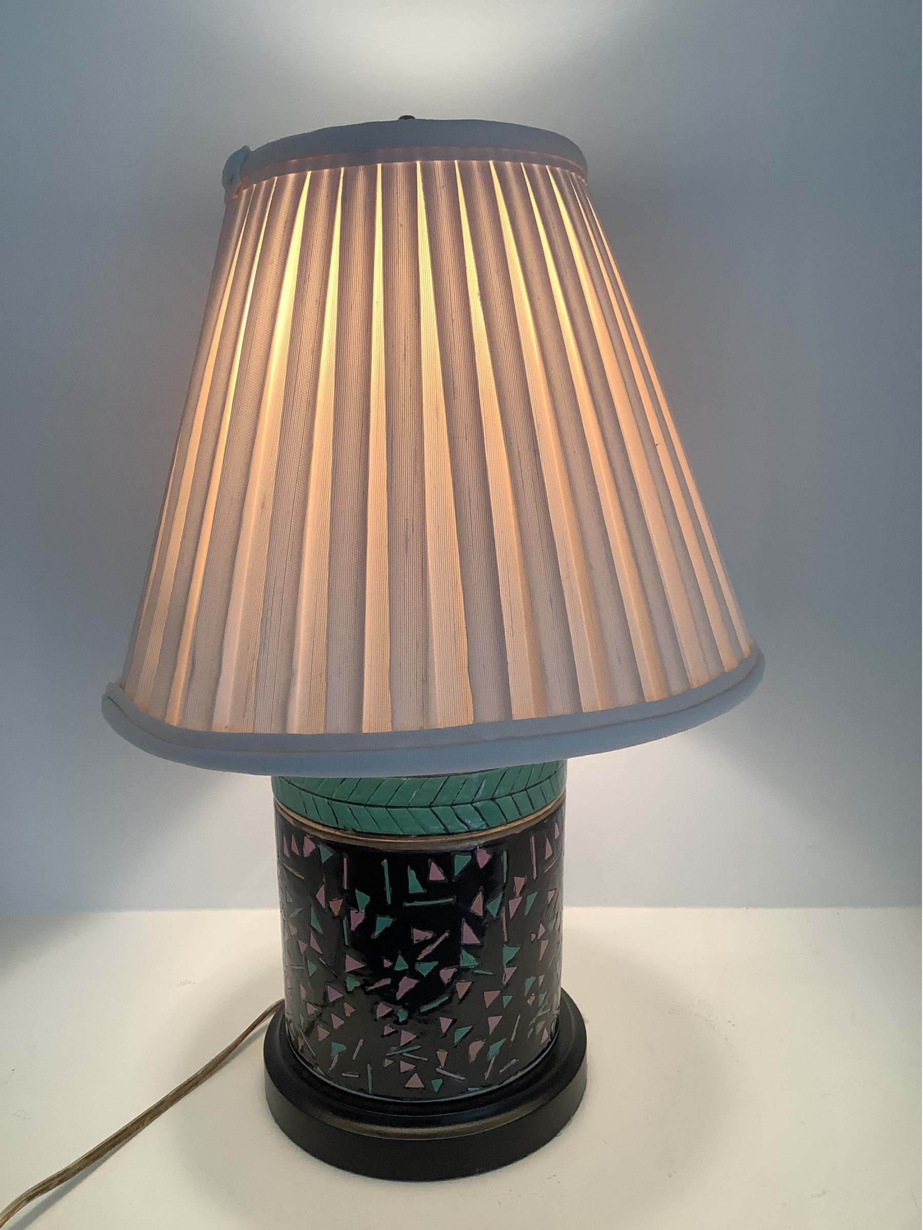 Vintage 16 Inch Lamp Ceramic Pink Green And Black Base
