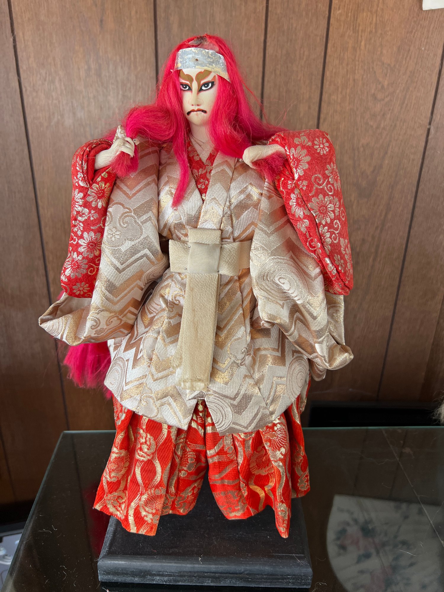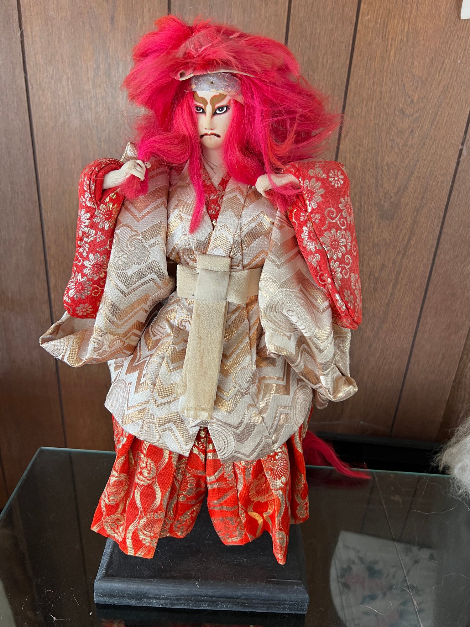 Traditional Japanese Renjishi "lion" kabuki doll dating from the 1980s.
