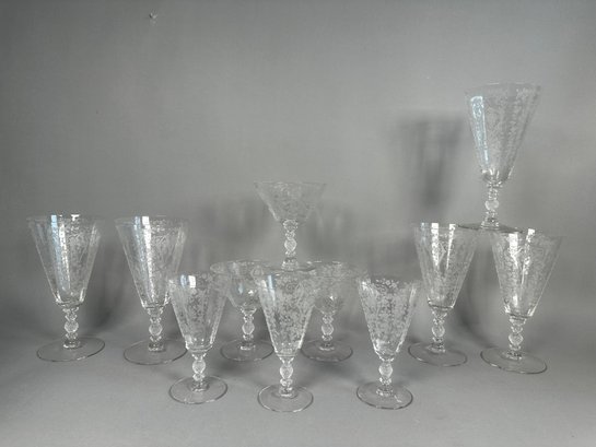 Vintage 1940s Cambridge Diane Pattern Etched Glasses